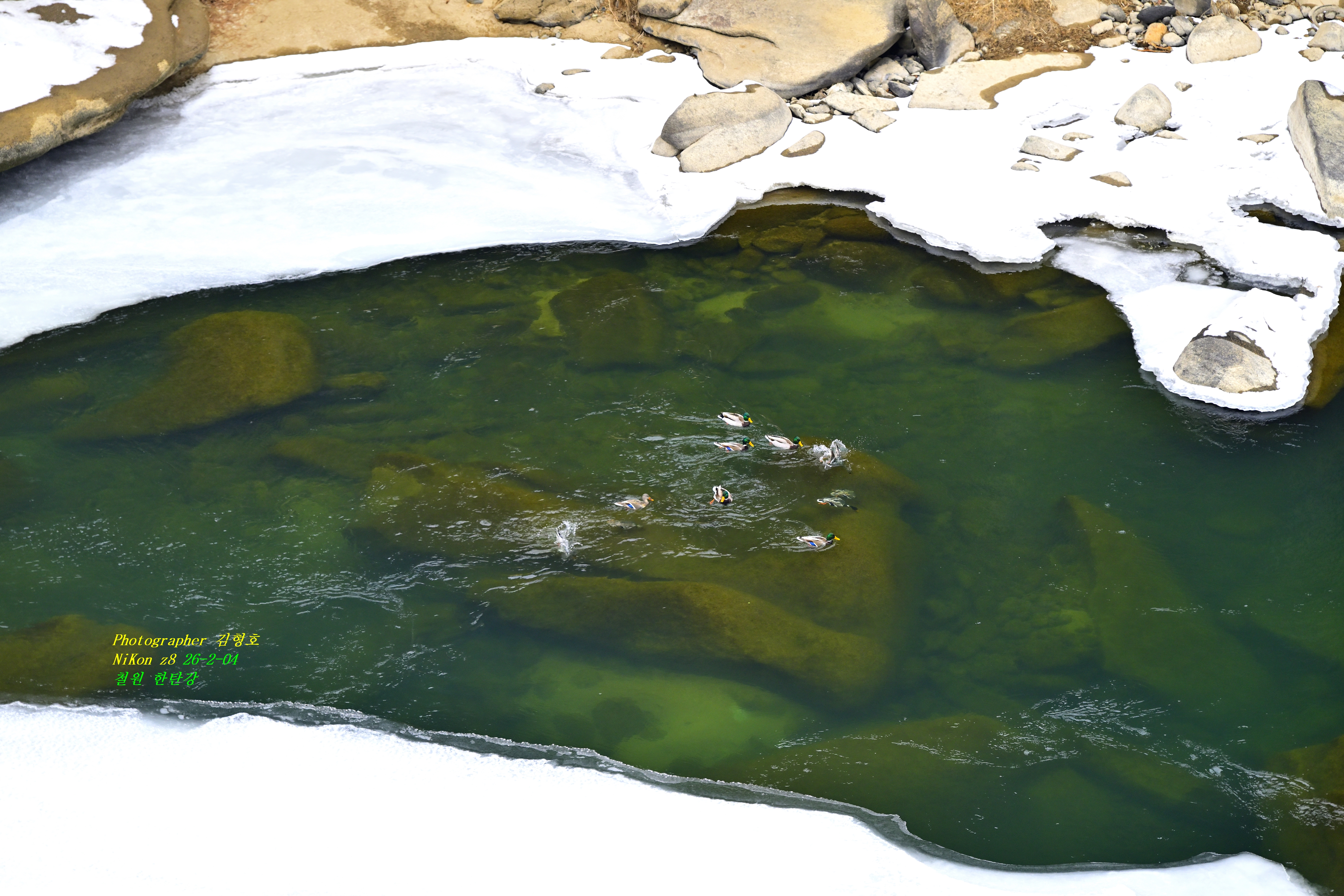 유유히 흐르는 한탄강 얼음 사이로 청둥오리들이 먹이를 찾아 나섰다.