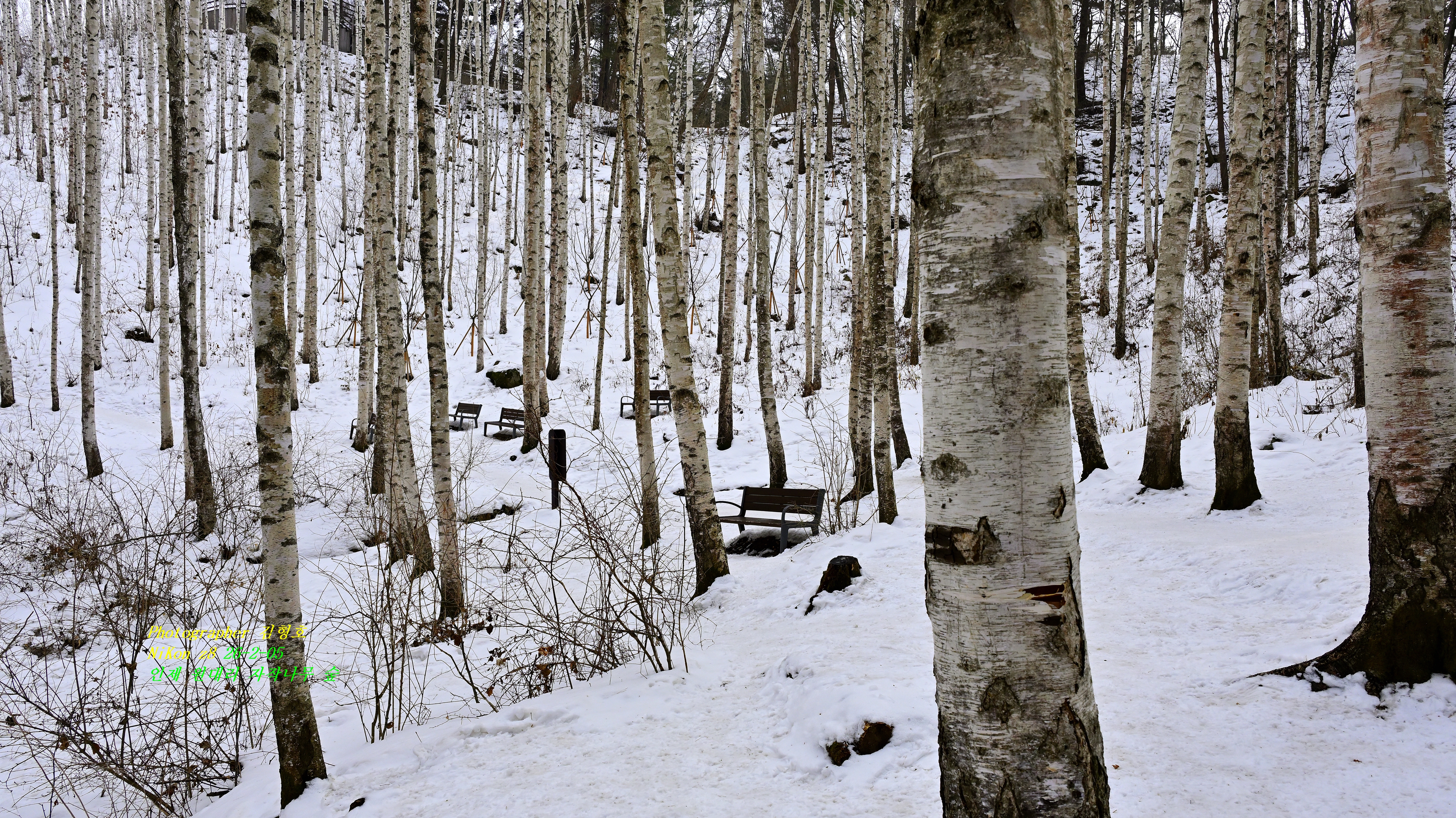 그리고 일행들을 만나 설원의 자작나무를 보면서 추억을 남긴다.