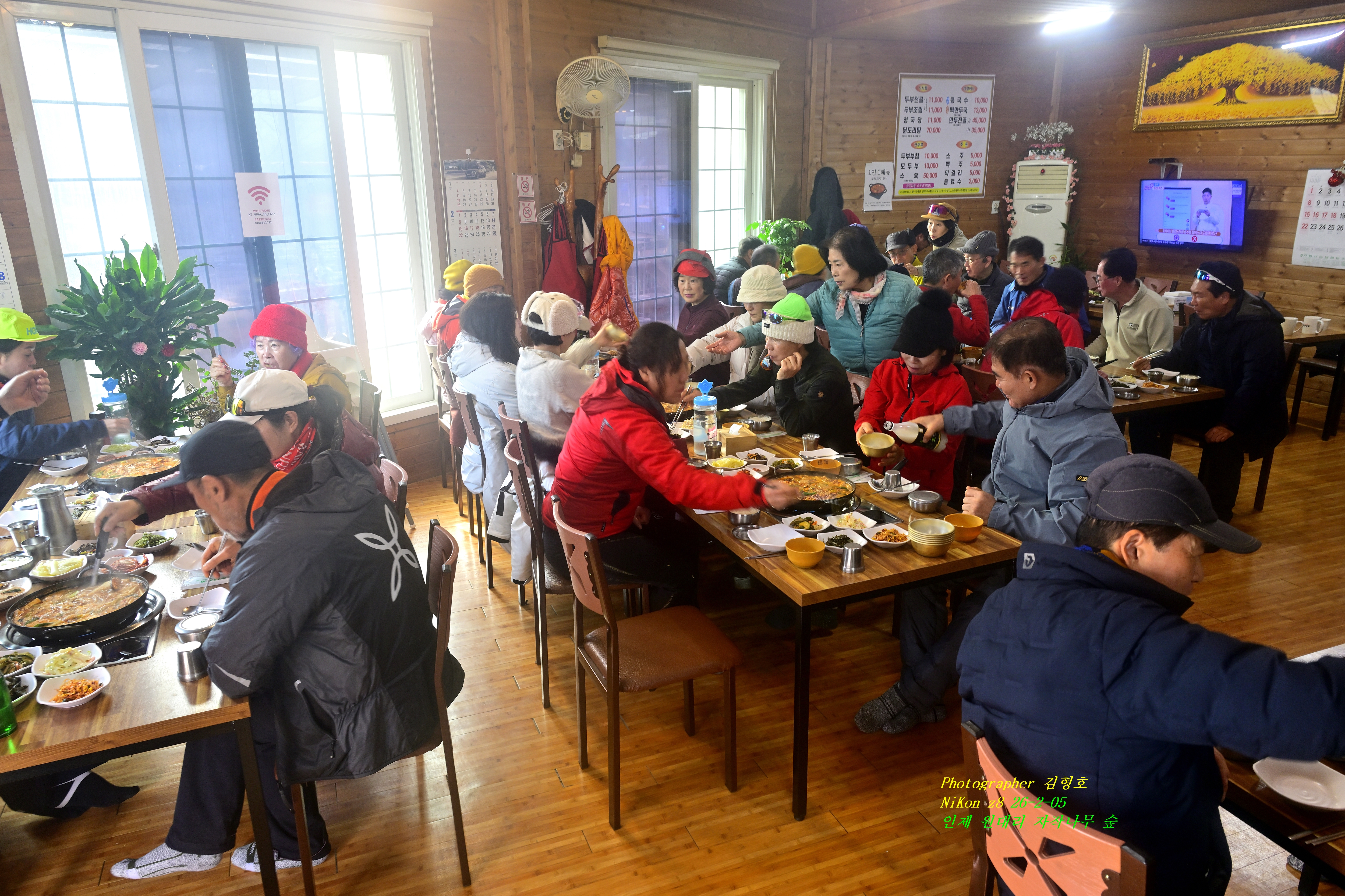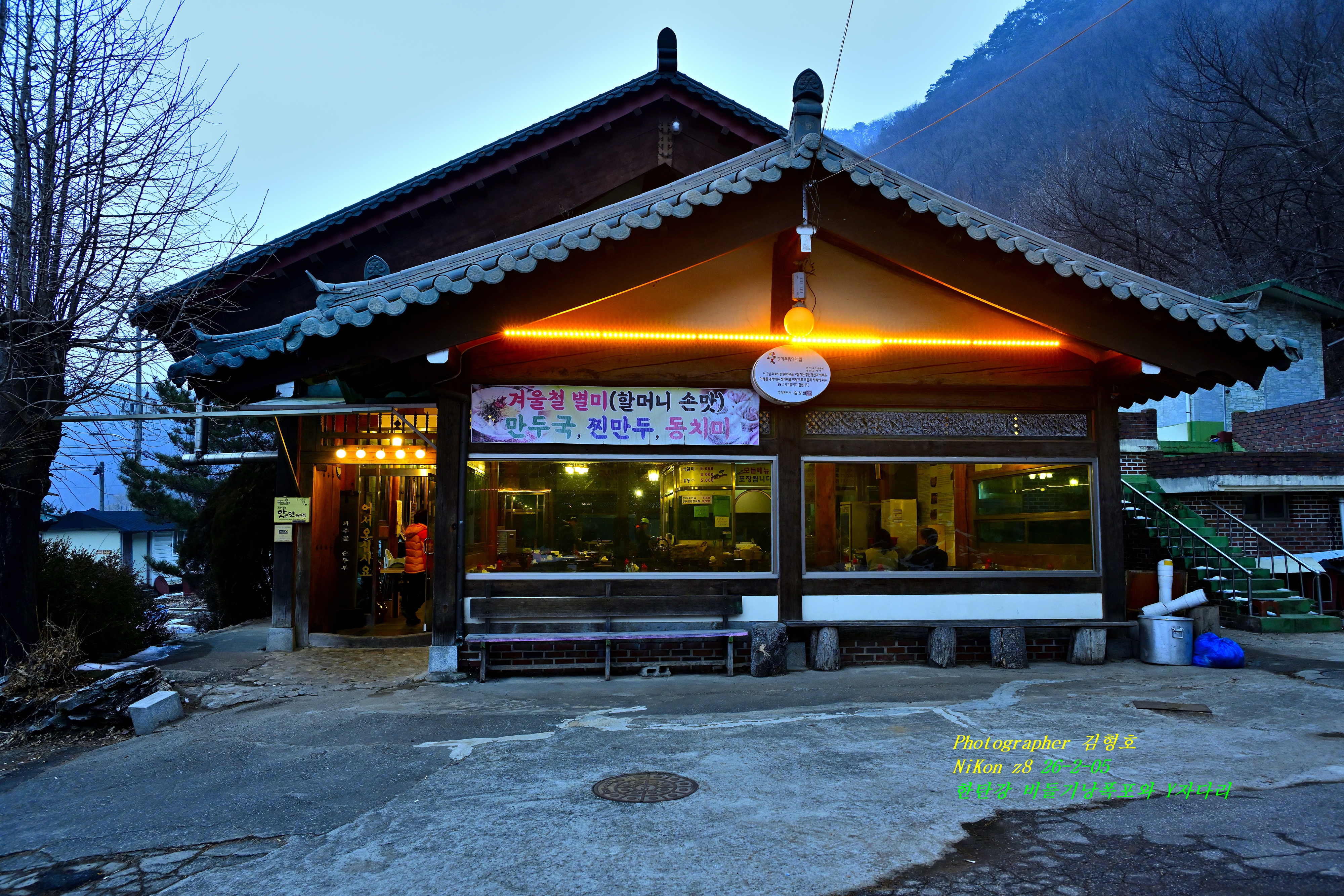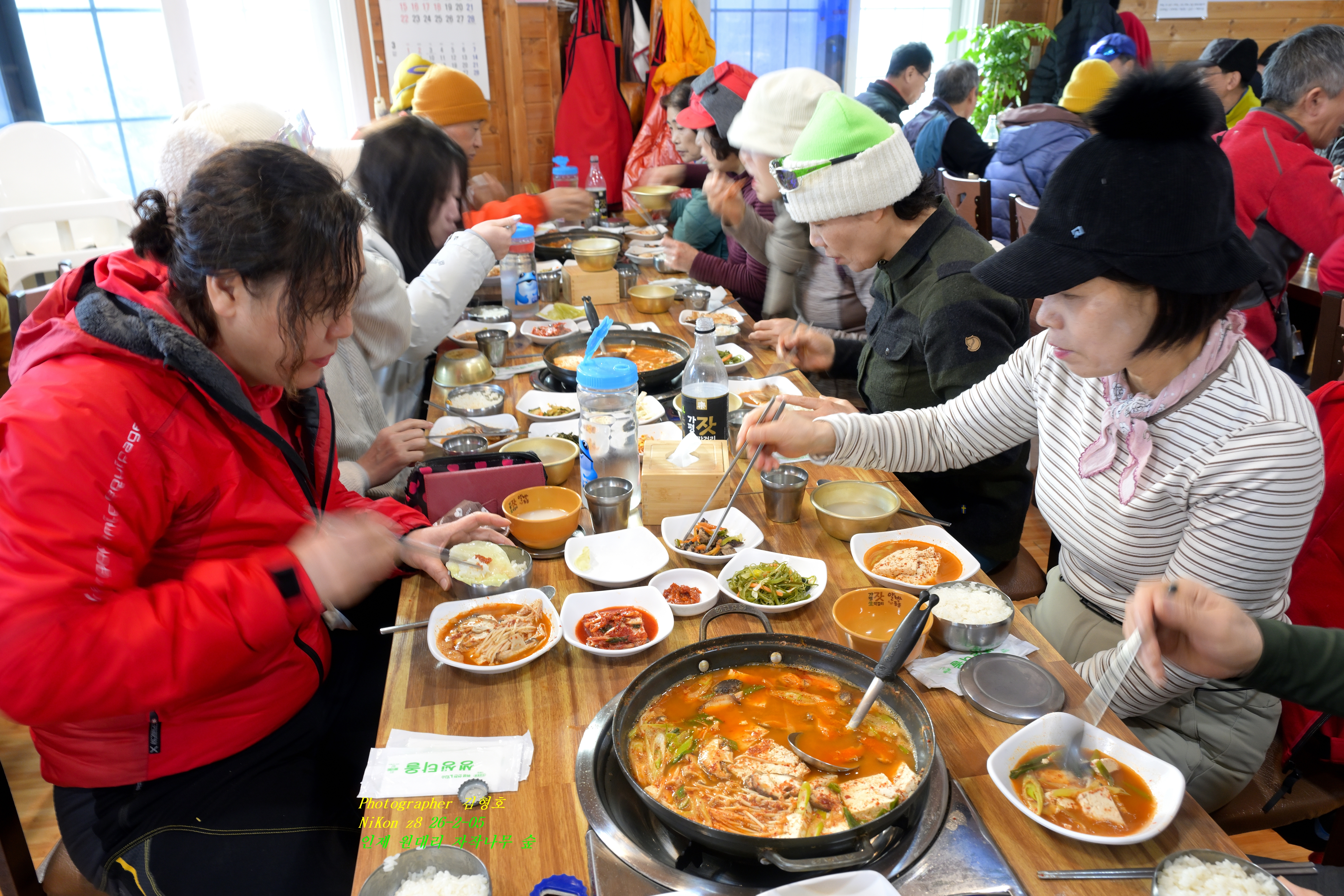 찬 날씨에 뜨거운 김이 나는 식당 안이라서 김이 서려서 사진이 뿌옇게 나왔다.