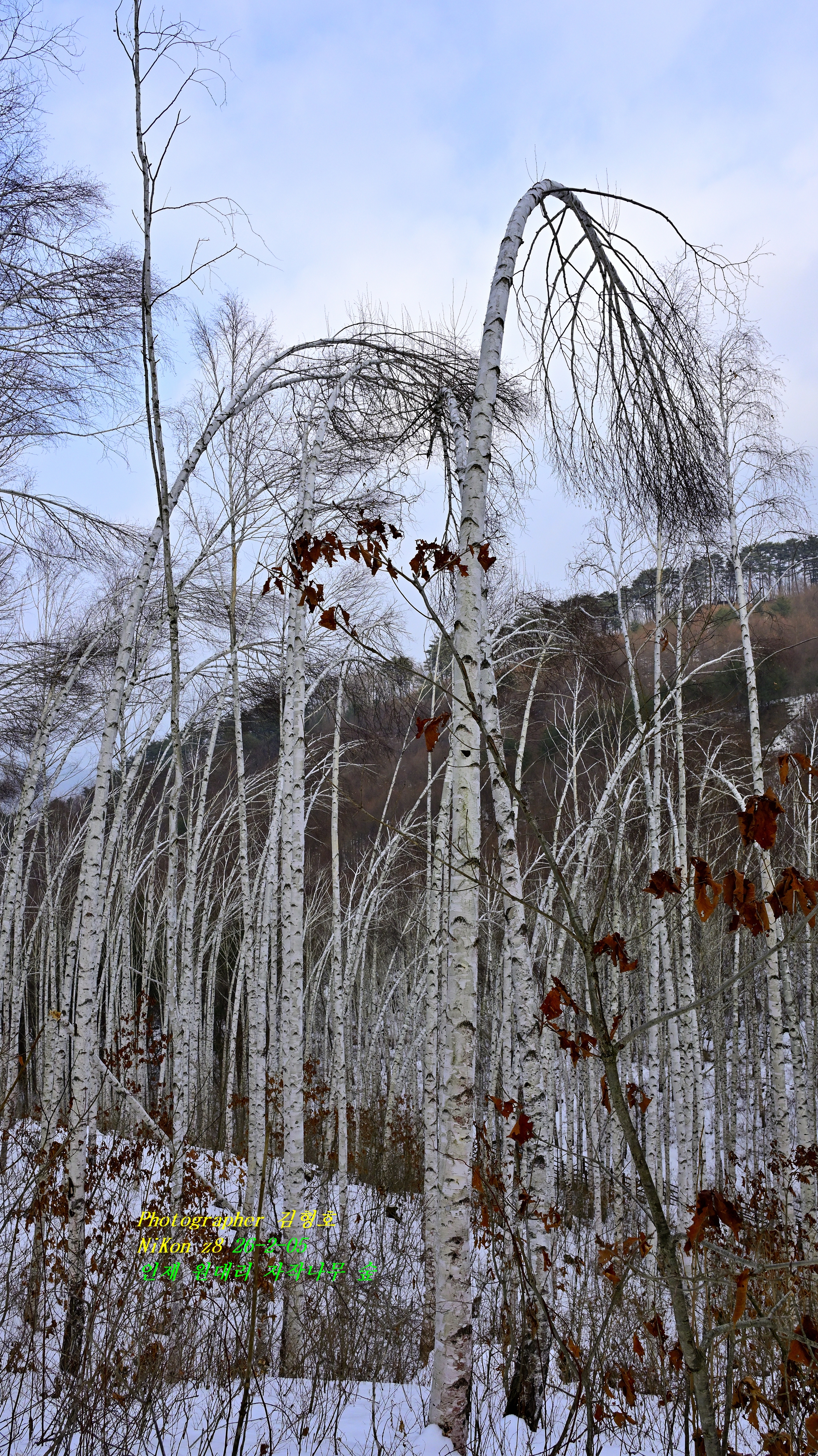 나이가 많아서 굽는 것이 아니고 자작나무는 시베리아 혹독한 추운 곳에서 자라는 나무라서 우리나라와는 기후가 맞지 않는데 그래도 강원도는 추운 지역이라서 그런대로 견디는 편이다. 눈이 쌓이고 해서 굽은 거라고 한다.