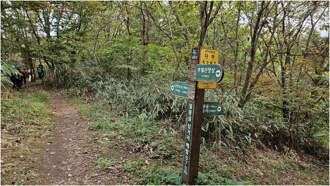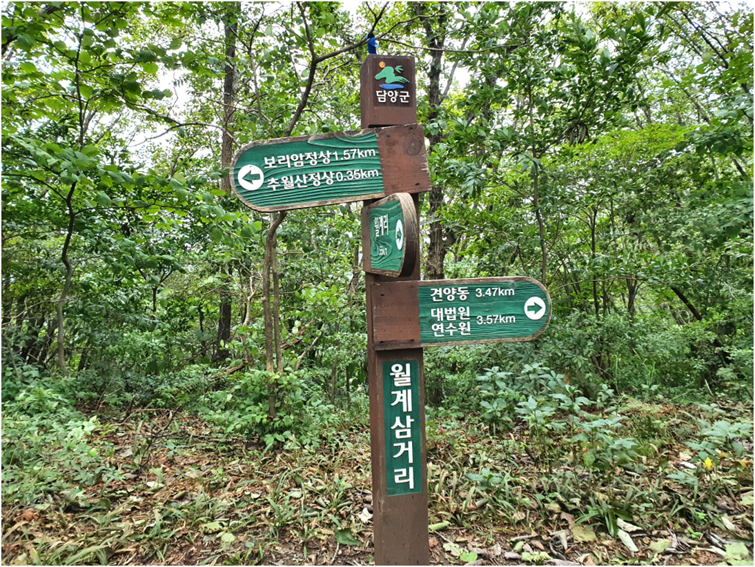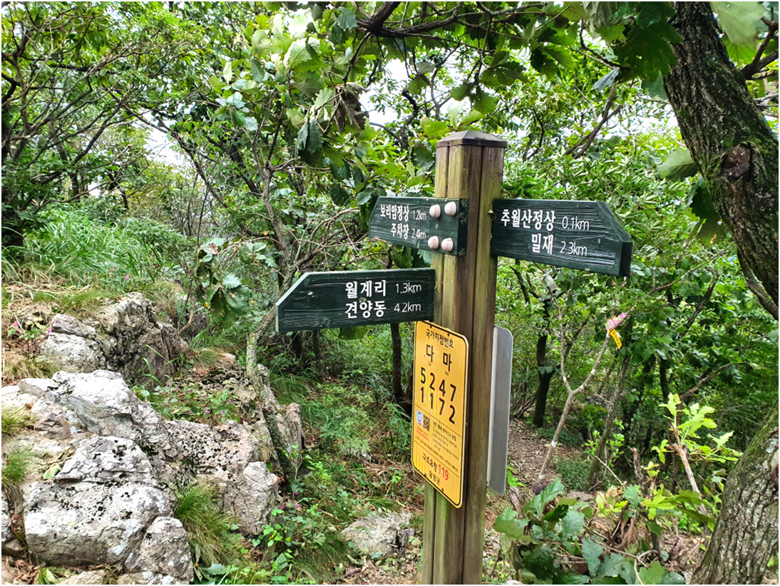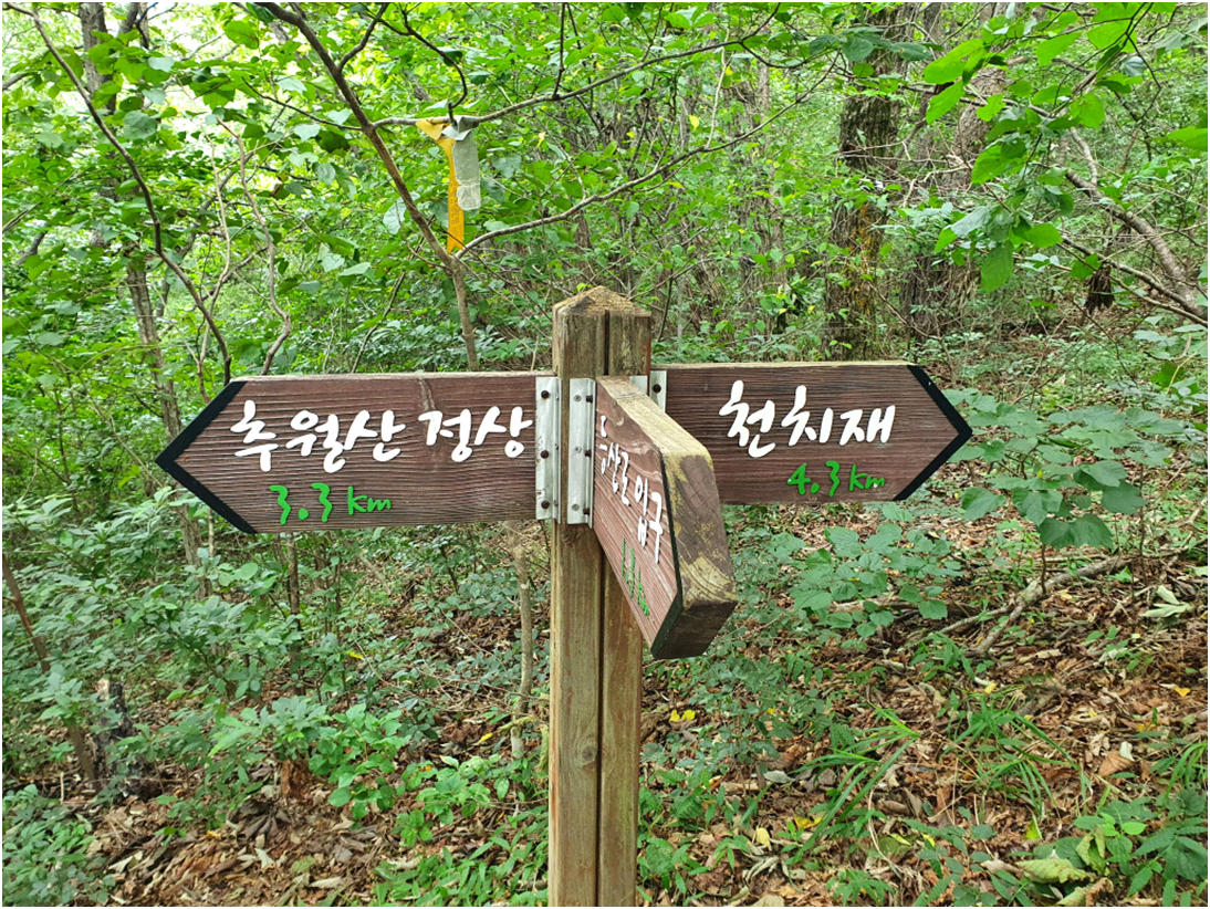 3). 코 스 : A코스 : 천치재-북추월산-대법원 가인연수원-심적산(깃대봉)-무능기재-수리봉-하늘재-