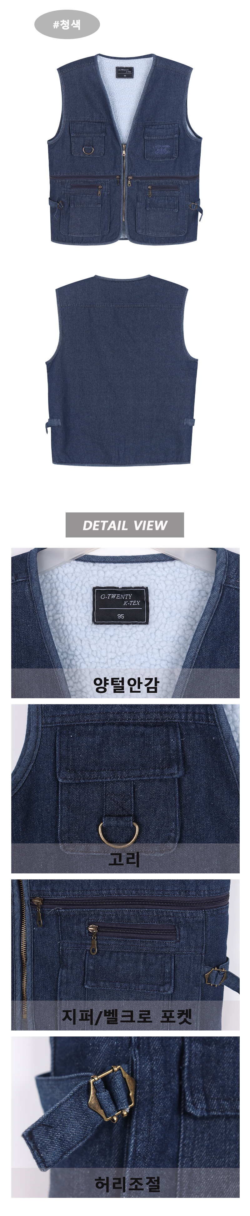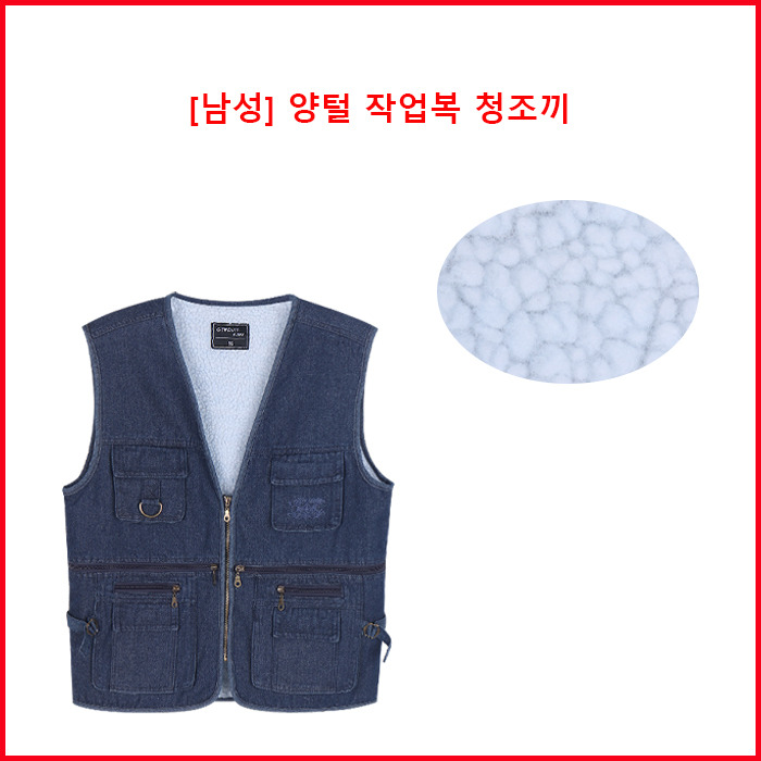 제품설명 : 남성 양털 작업복 청조끼입니다. 수납많고 양털 부드러워요!