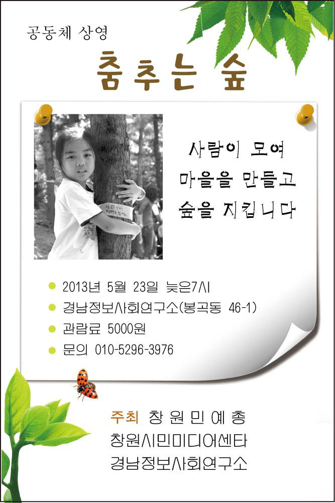 독립영화 <춤추는 숲> 공동체상영 작성자또하나|작성시간13.05.16|조회수16 목록 댓글 0 글자크기 작게가 글자크기 크게가 다음검색 현재 게시글 추가 기능 열기 북마크 공유하기 신고 센터로 신고 댓글 댓글 0 댓글쓰기 답글쓰기 댓글 리스트