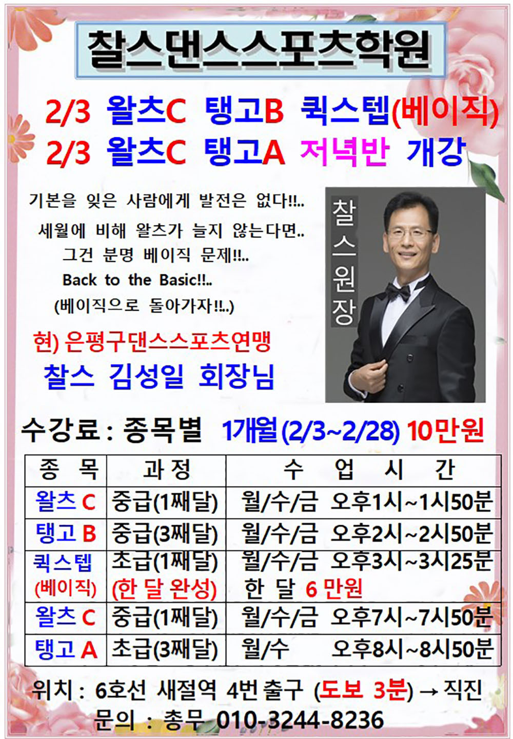 찰스댄스스포츠학원 2월 단체반시간표 작성자해맑은미소|작성시간25.01.28|조회수164 목록 댓글 0 글자크기 작게가 글자크기 크게가 다음검색 현재 게시글 추가 기능 열기 북마크 공유하기 신고 센터로 신고 댓글 댓글 0 댓글쓰기 답글쓰기 댓글 리스트