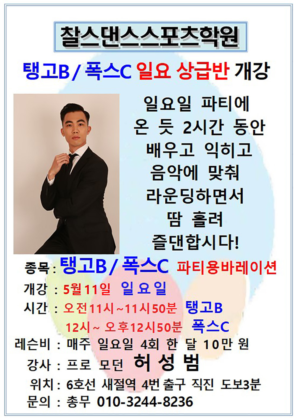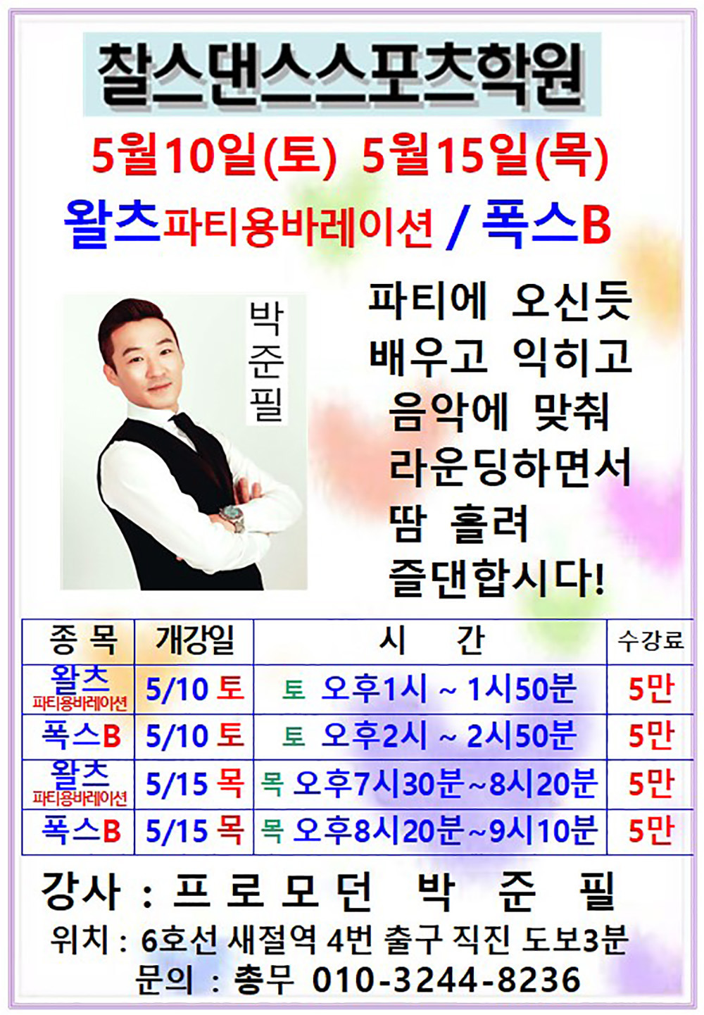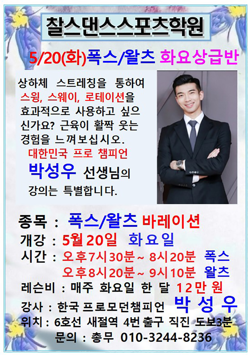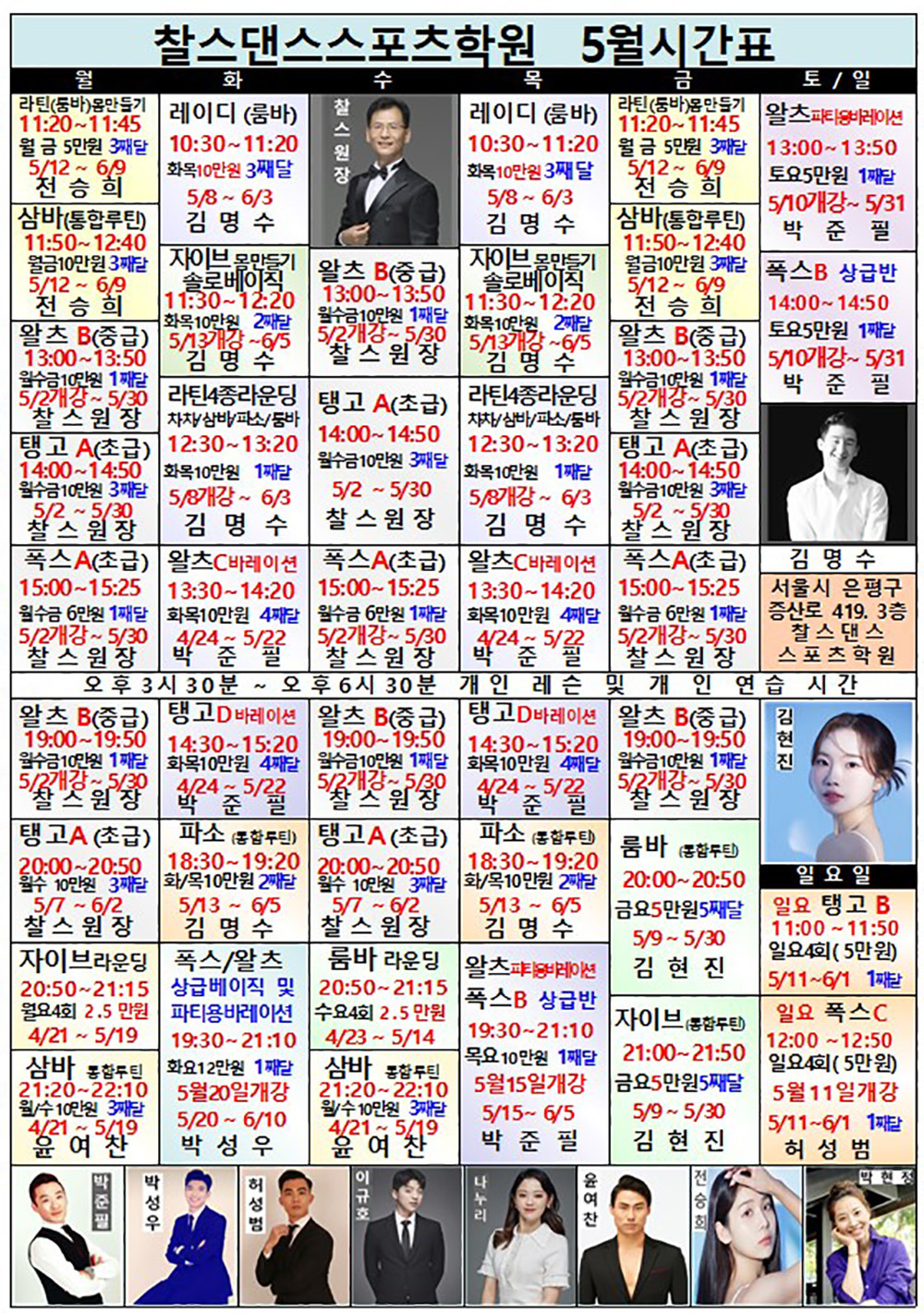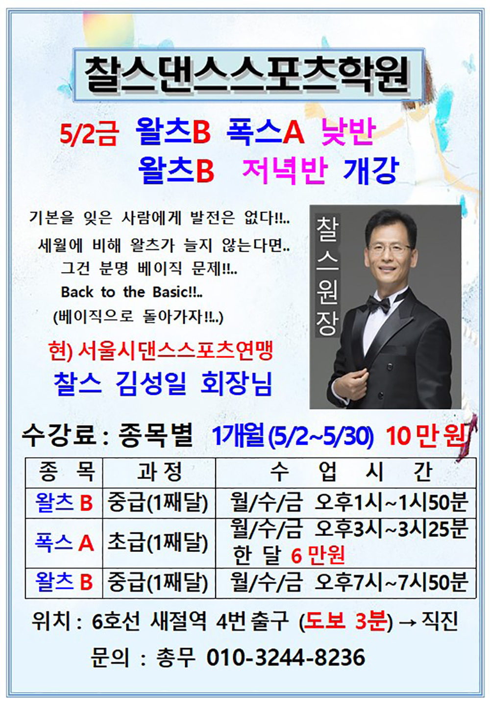 찰스댄스스포츠학원 5월 단체시간표 작성자해맑은미소|작성시간25.04.26|조회수220 목록 댓글 0 글자크기 작게가 글자크기 크게가 다음검색 현재 게시글 추가 기능 열기 북마크 공유하기 신고 센터로 신고 댓글 댓글 0 댓글쓰기 답글쓰기 댓글 리스트