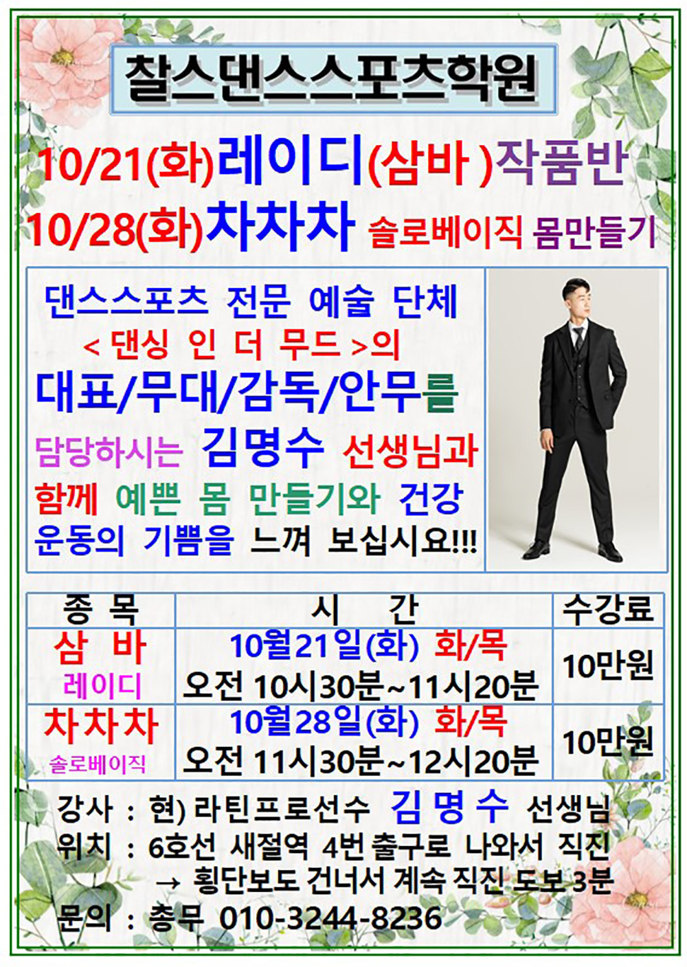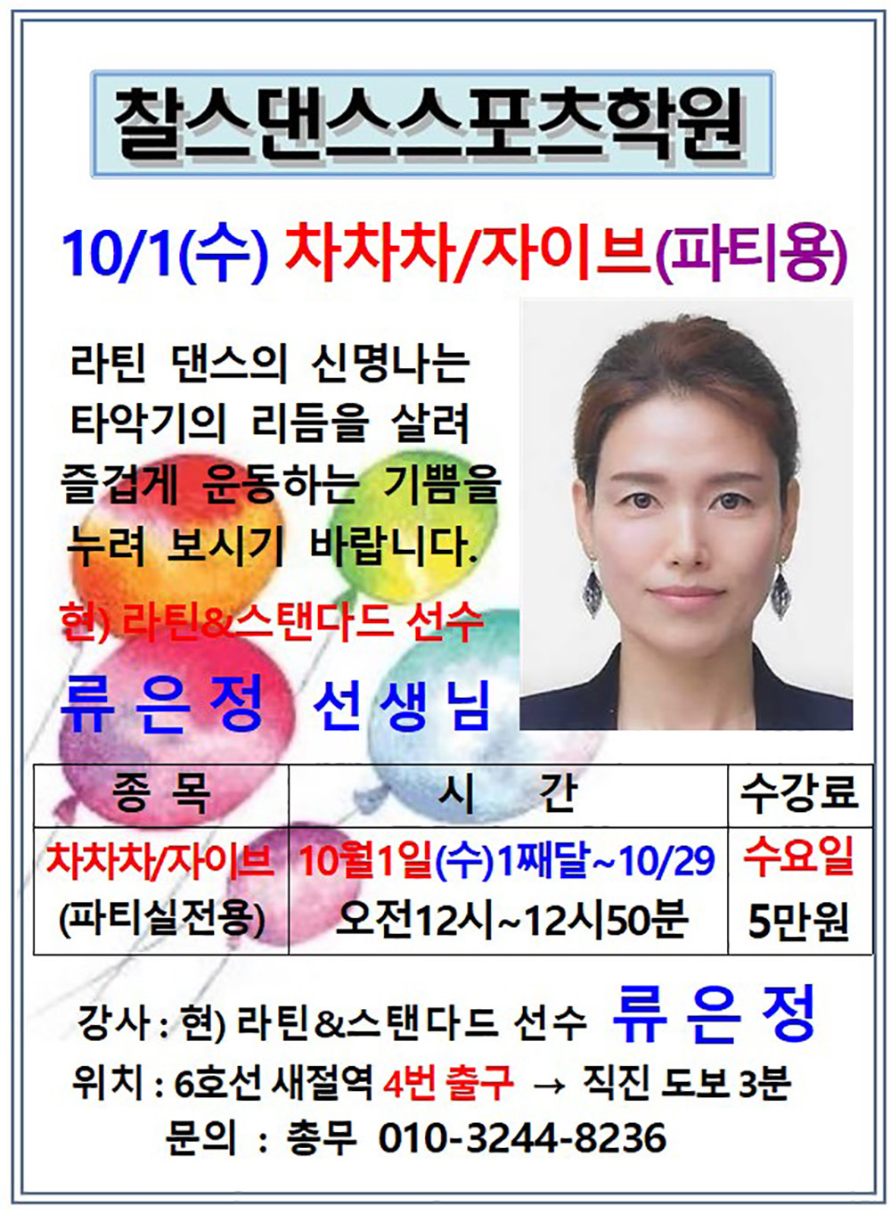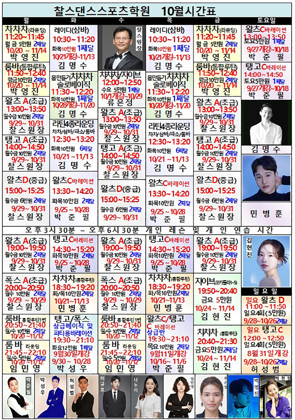 찰스댄스스포츠학원 10월 단체반 전체 시간표 작성자해맑은미소|작성시간25.09.25|조회수162 목록 댓글 0 글자크기 작게가 글자크기 크게가 다음검색 현재 게시글 추가 기능 열기 북마크 공유하기 신고 센터로 신고 댓글 댓글 0 댓글쓰기 답글쓰기 댓글 리스트