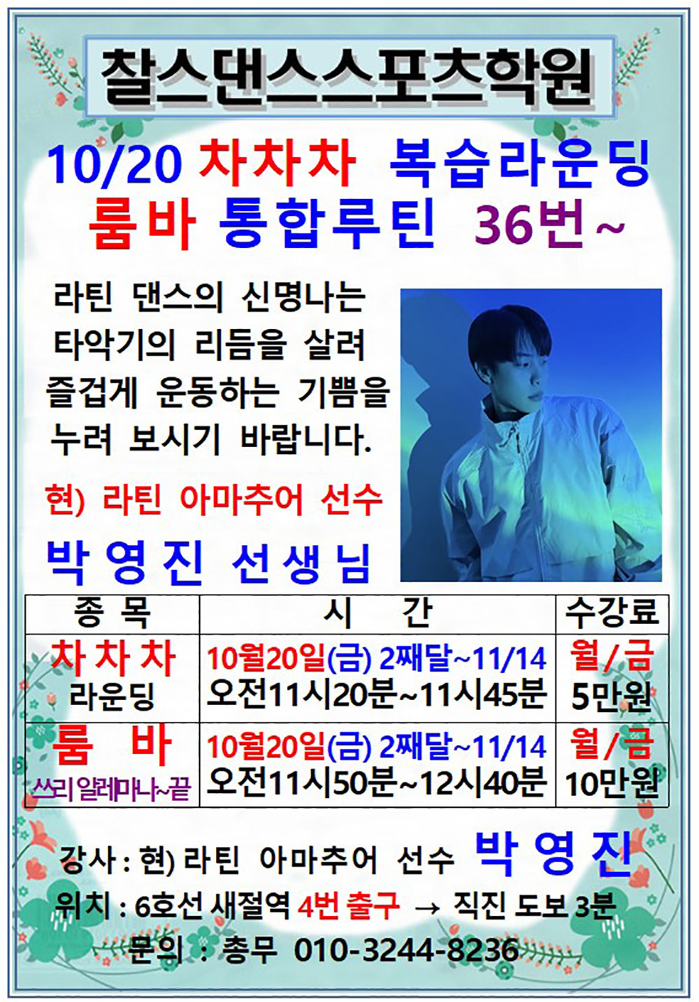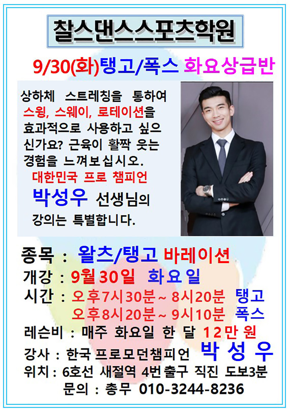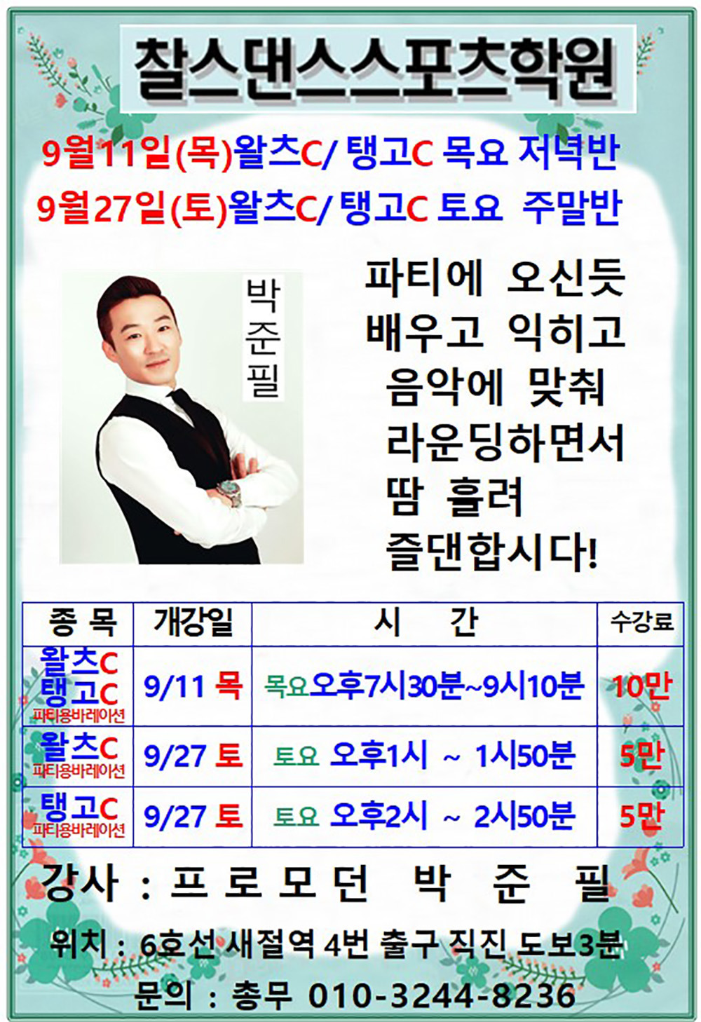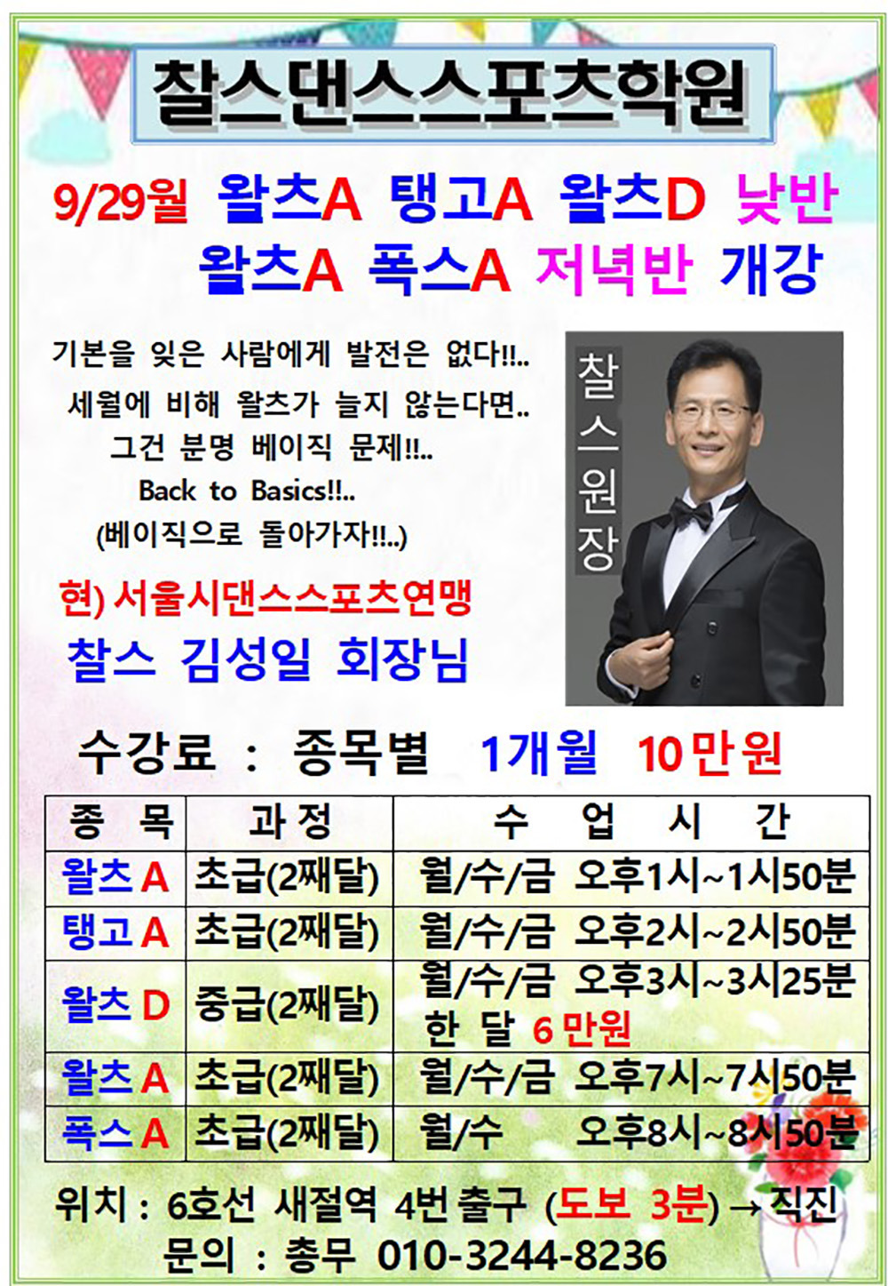 찰스댄스스포츠학원 10월 단체반 전체 시간표 작성자해맑은미소|작성시간25.09.25|조회수162 목록 댓글 0 글자크기 작게가 글자크기 크게가 다음검색 현재 게시글 추가 기능 열기 북마크 공유하기 신고 센터로 신고 댓글 댓글 0 댓글쓰기 답글쓰기 댓글 리스트
