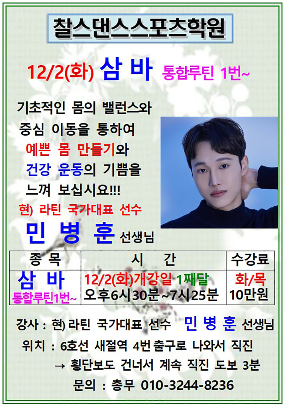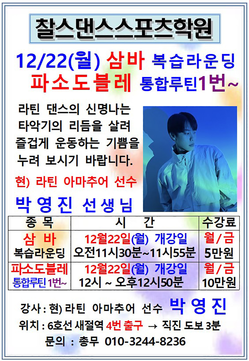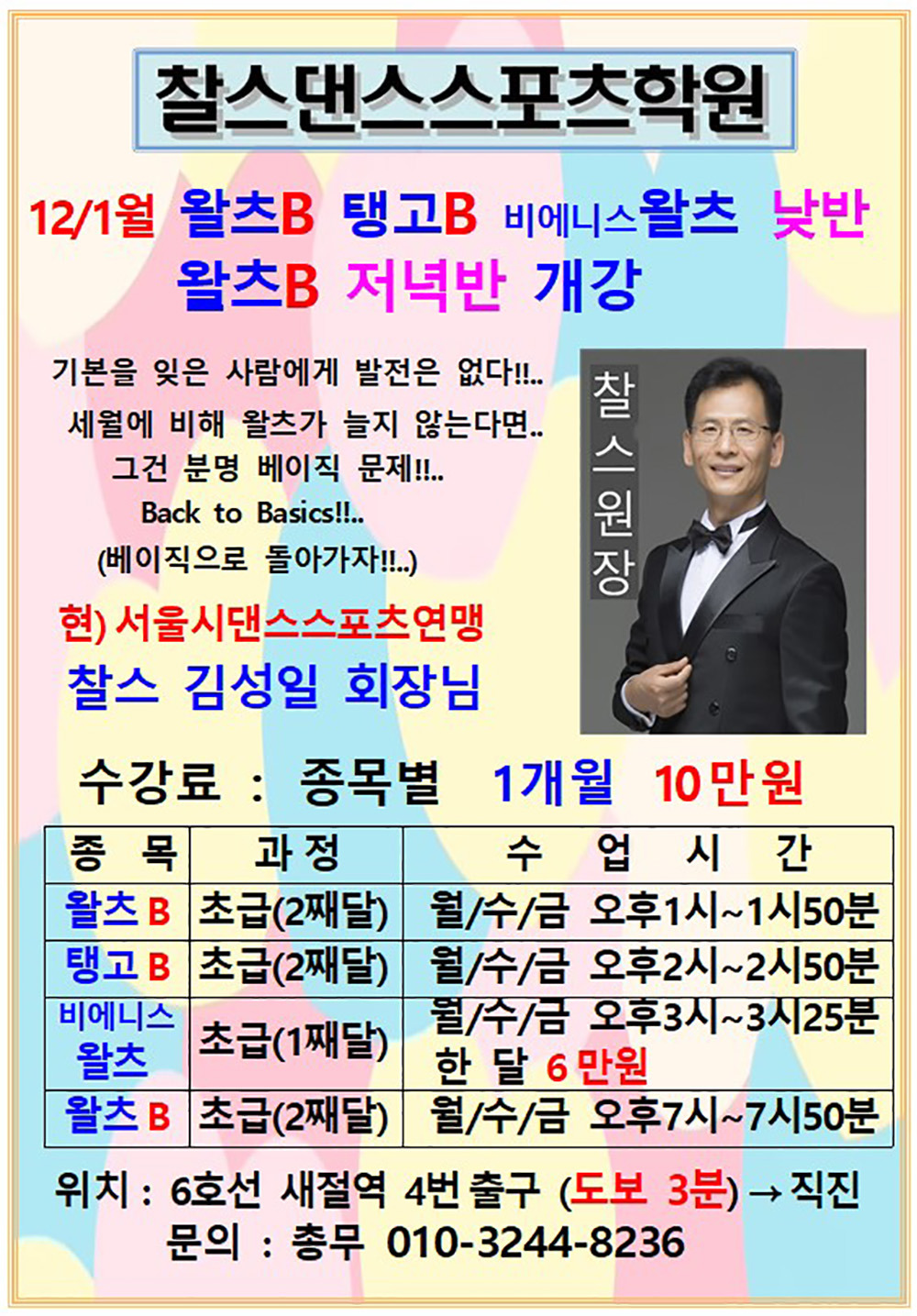 찰스댄스스포츠학원 단체반 전체시간표 (2025년 12월) 작성자해맑은미소|작성시간25.11.27|조회수145 목록 댓글 0 글자크기 작게가 글자크기 크게가 다음검색 현재 게시글 추가 기능 열기 북마크 공유하기 신고 센터로 신고 댓글 댓글 0 댓글쓰기 답글쓰기 댓글 리스트