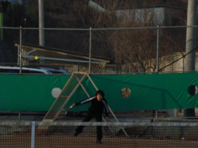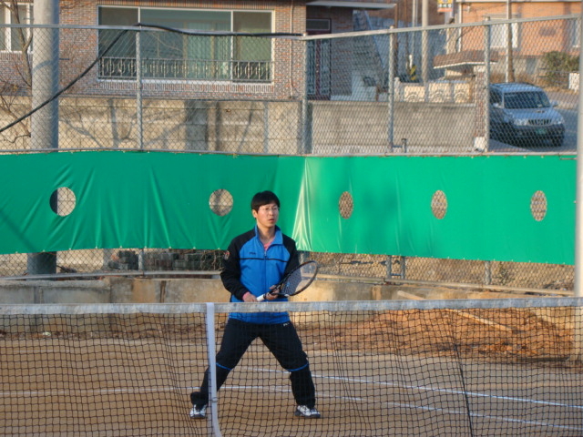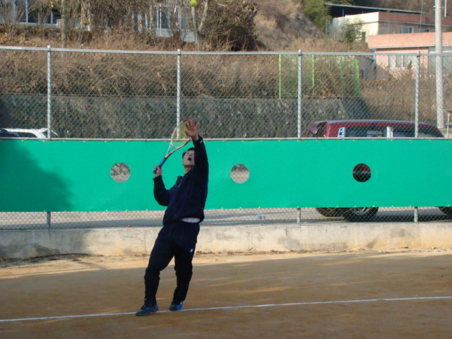 동현이의 서비스 장면^^ 상대방을 뚤어져라 보고있습니다. 상대방이 껌쩍 놀라겠는디