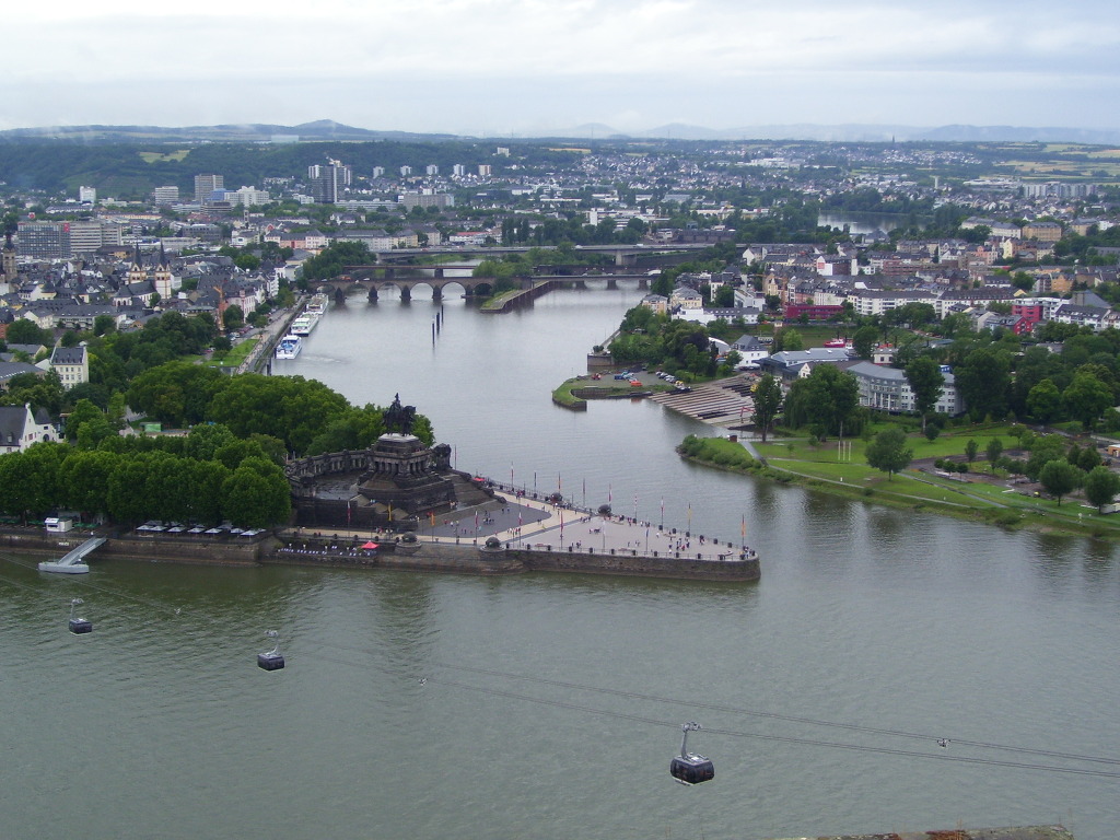 라인강과 모젤강이 만나는 삼각지, 기마상은 빌헤름 황제의 동상임