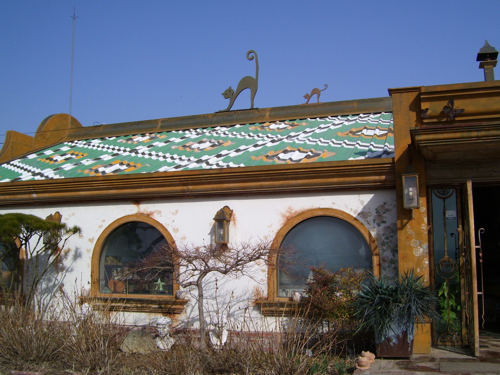 숙소앞의 찻집, 지붕위의 고양이가 특히했음