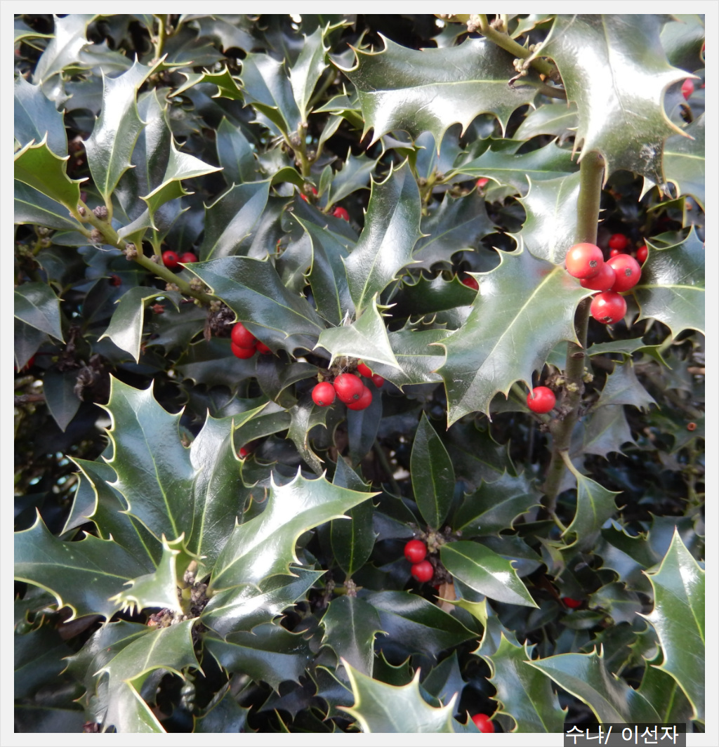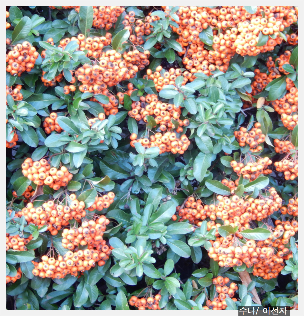 작은 열매의 가시가 있는 나무는 피라칸서스 나무라고 하는데 그곳에서의 이름은 좀다른가 봅니다.. -