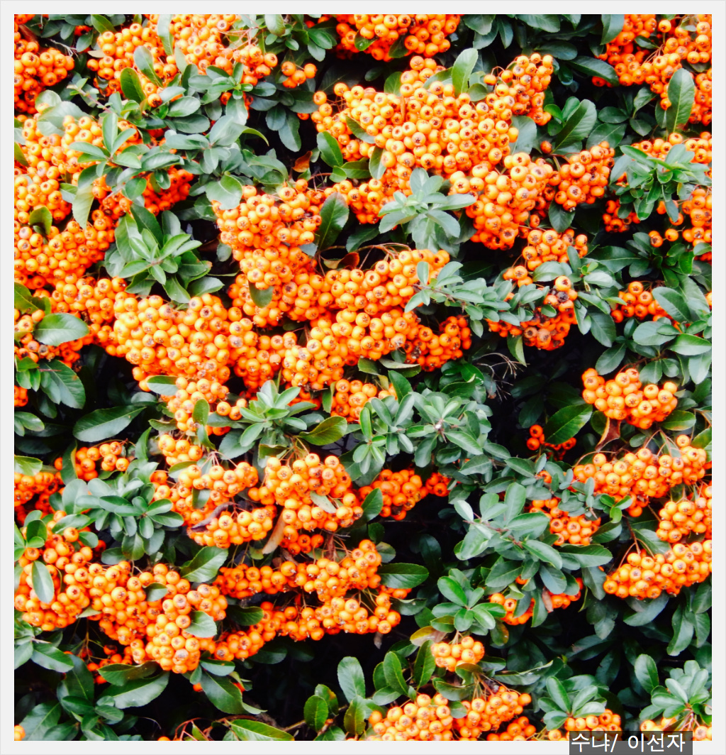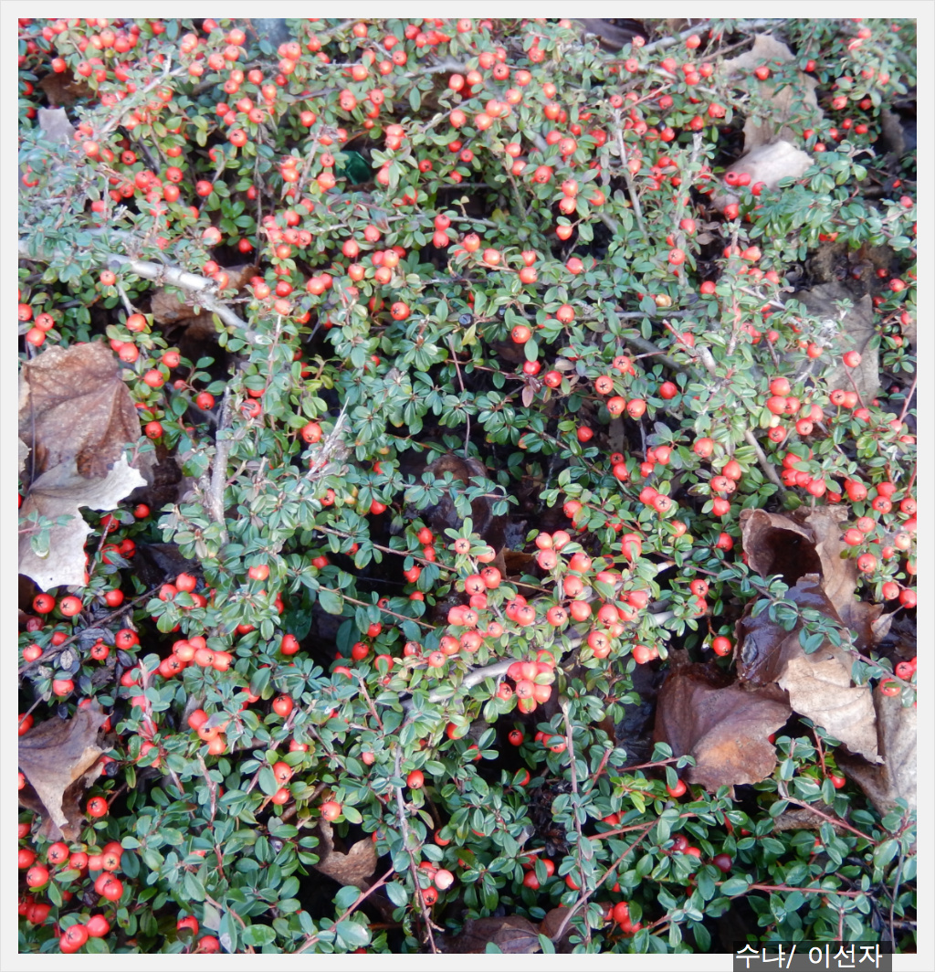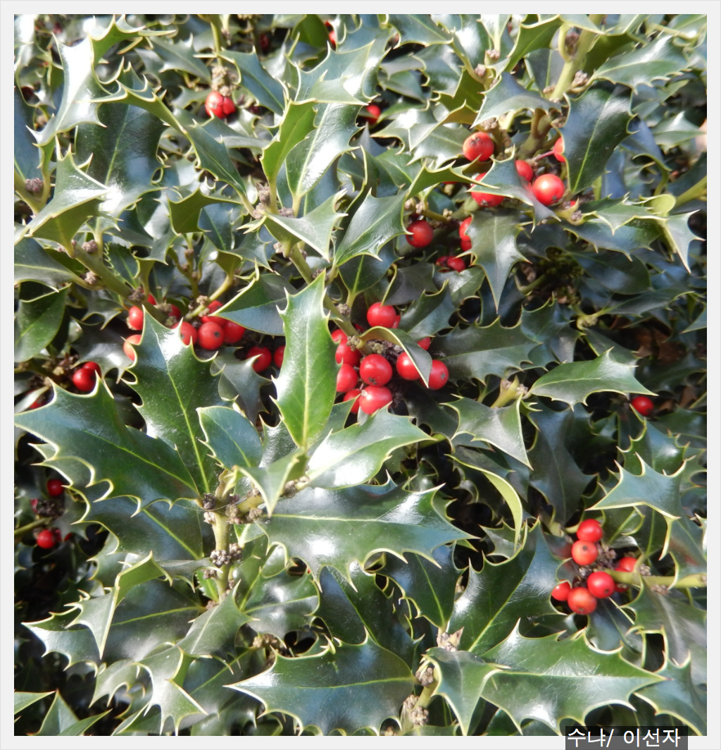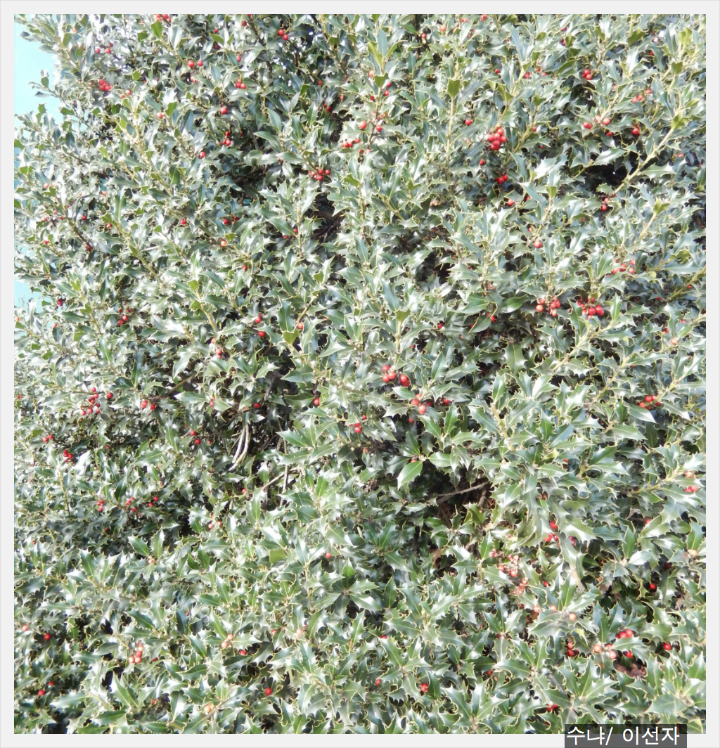 아래의 작은 열매나무는 잎은 항상 푸르고,