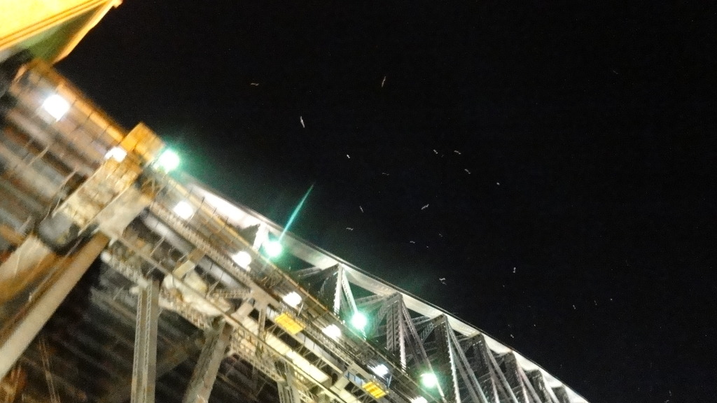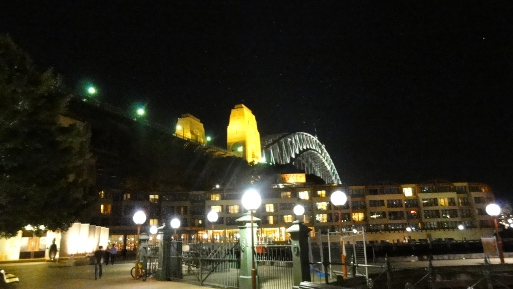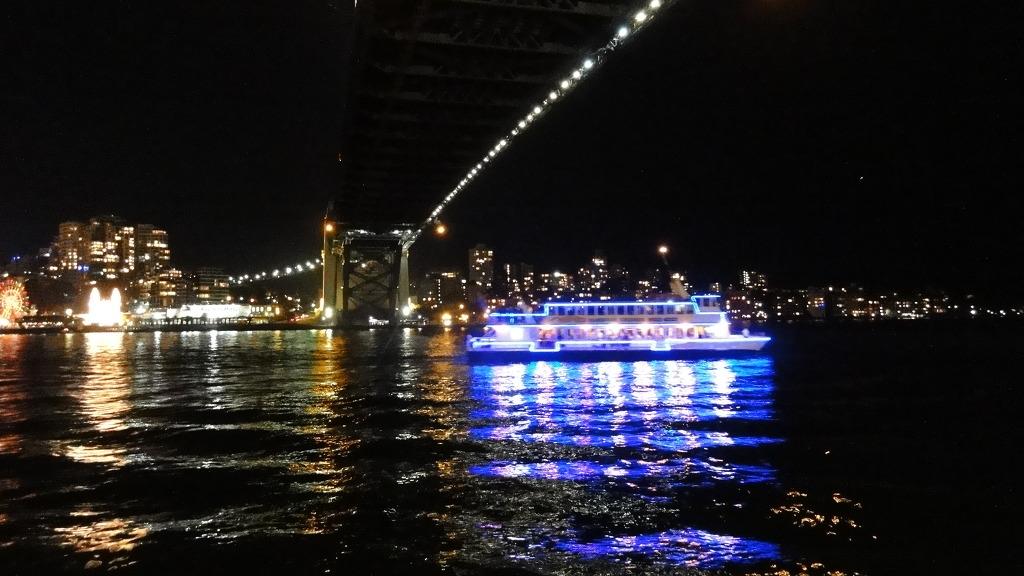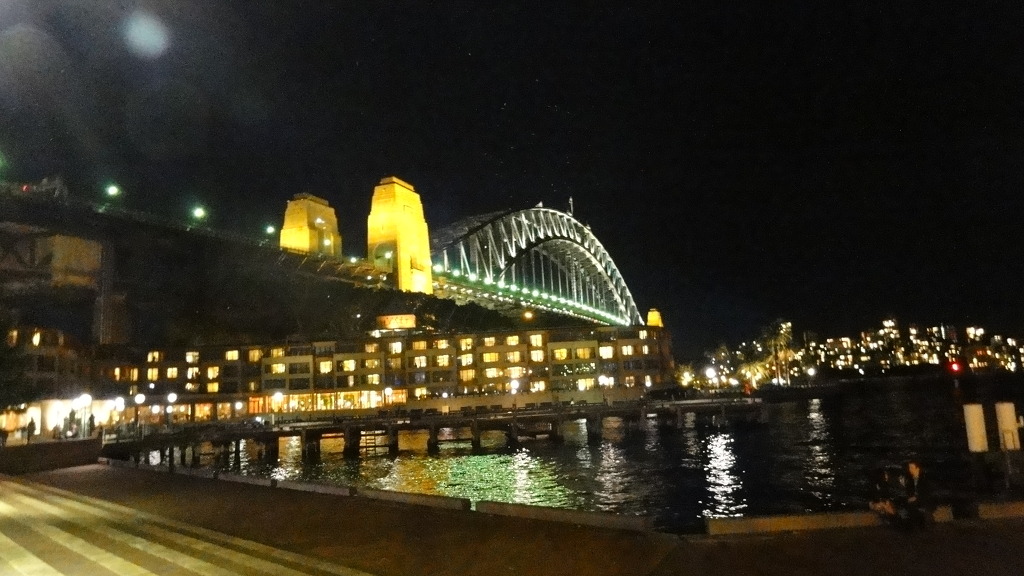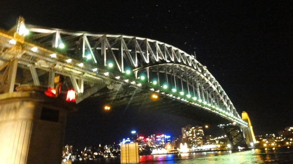 다리 위 하늘에 작은 점들은 조명을 보고 몰려 든 갈매기들의 군무(춤)로 시드니의 명물이 되었는데 주말에만 볼 수 있는 광경입니다.