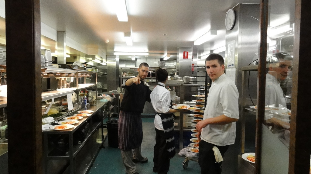 하버브릿지 근방의 식당에서 스테이크를 먹었는데 주방의 요리사들이 내가 사진 찍는 것을 보고 손으로 가리키고 있네요.