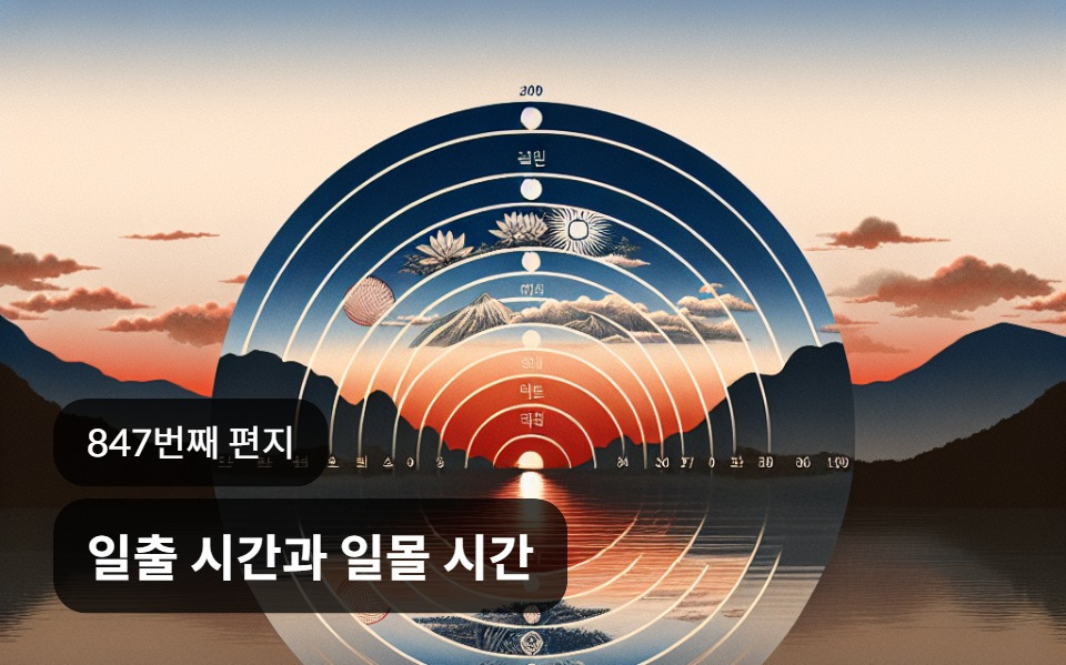 저는 매일 아침 일어나 가장 먼저 컴퓨터를 켜고 일출 일몰 시간을 검색합니다. 일출과 일몰 시간에 관심을 갖게 된 것은 아침 산책 때문입니다.