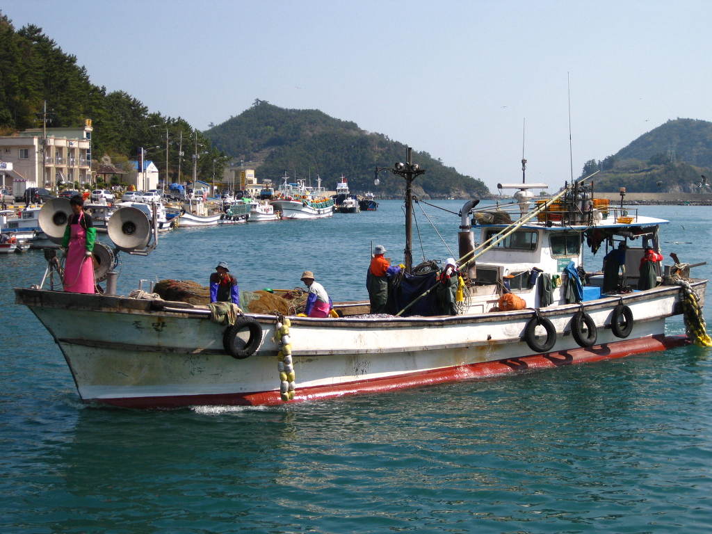이렇게 잡아오는 멸치는 한배에 평균 20-30상자 로서 이날은 3배가 들어 오더군요! 한상자의 량은 보이는 것처름 프라스틱에 담은 그대로 경매에 부쳐 그자리에 온 사람들은 한 상자에 3,00원-4,000원씩 더주고 사는데 1상자에 40,000원 으로 좀 비싼 편이지만 량이 많아 2상자 가지고 3상자를 낼수 있는 것이기에, 또한 신선도를 위하여 멀다 않고 사러오나봅니다.