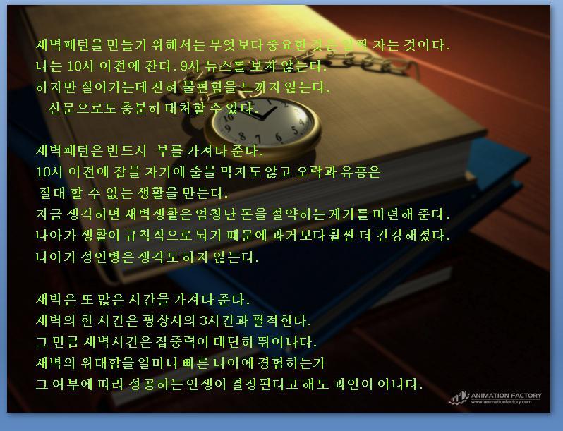 지인이 보내 온 자료 중에 공유하고픈 자료가 있어 올려 봅니다. 늦게 자고 늦게 일어나는 참나 회원님들은 새해 부터 한 번 생활패텬을 바꿔 보시기 바랍니다.