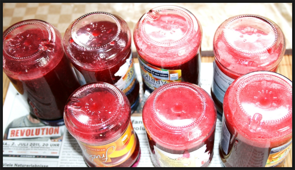 병에 넣은 잼을 뜨거울때 거꾸로 세워서 뚜껑까지 뜨겁게 밀봉이 되게하고 아래의 공기가 위로 올라와서 압축되게하면 2-3년까지도 잼을 먹으루 있습니다. 잼은 꼭 빵에 만 먹기 보담은 요꾸르트나 다른 후식 디저트에 조금씩 섞어서 설탕대신으로 사용하면 과일의 향내가 나므로 더욱 맛있는 음식이 됨니다.