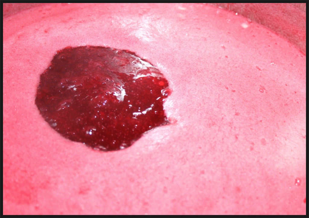 보통 끓고나서 이렇게 사기접시에 담아서 응고 시험을 함니다. 잘응고되지않을땐 설탕을 조금더 넣어도 무방함.