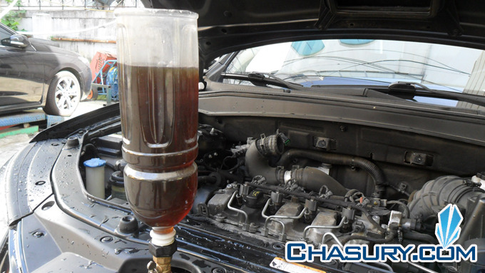 플러싱 액 투입후 10여분이 지나자 녹물이 피어나기 시작합니다...