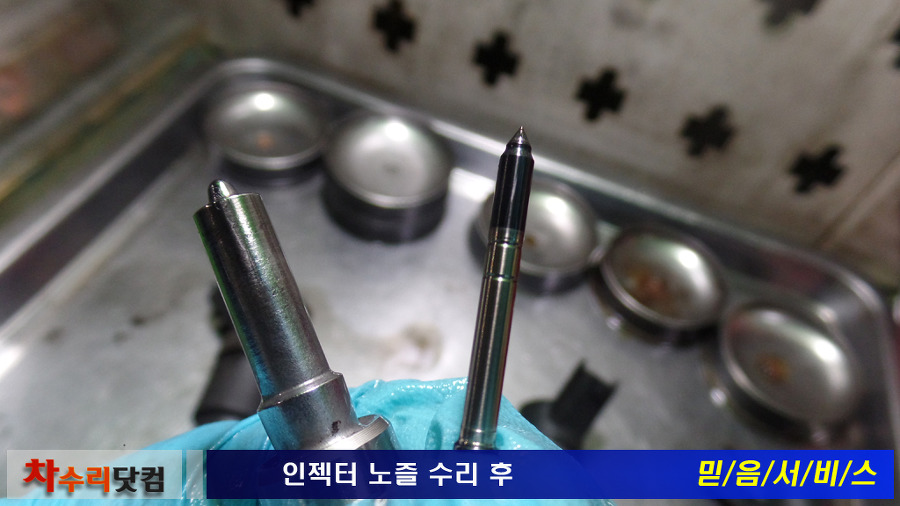 인젝터 노즐에 퇴적 된 슬러지 보이시나요...