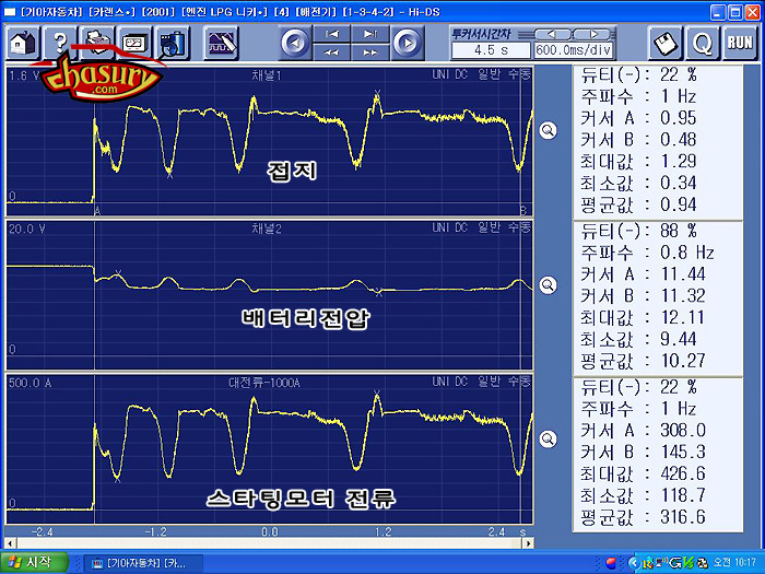 시동시 전류값은 차종마다 약간은 틀리나 약 60 ~ 200A까지 나온답니다..