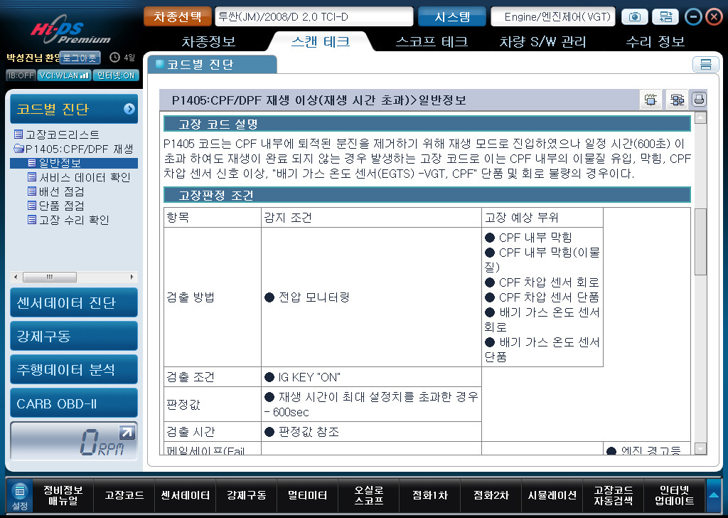 P1405 DPF재생시관 초과