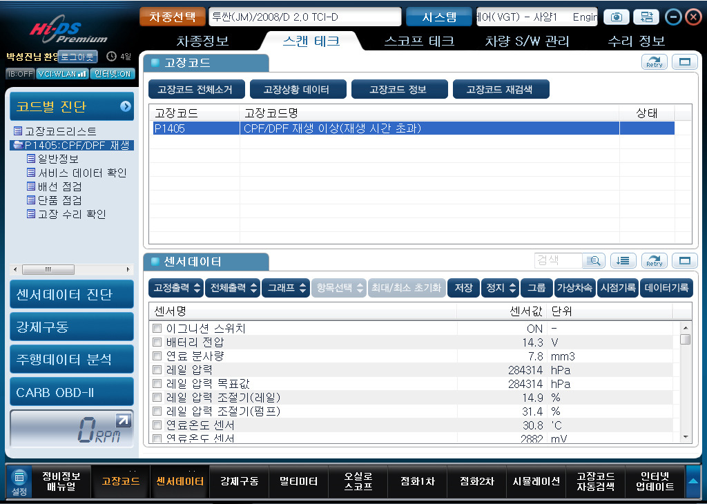 DPF 전단압력이 1413hpa로