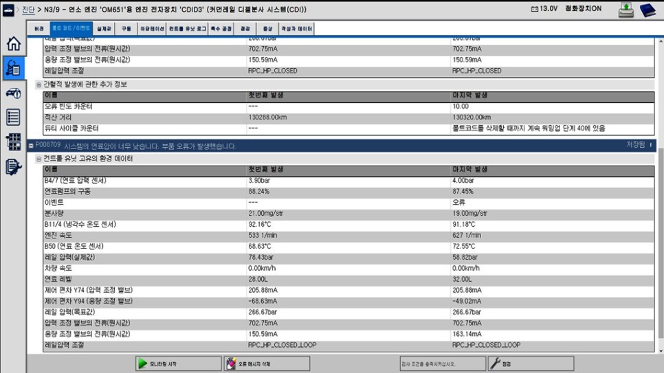 코드 발생 시 레일압력을 보면