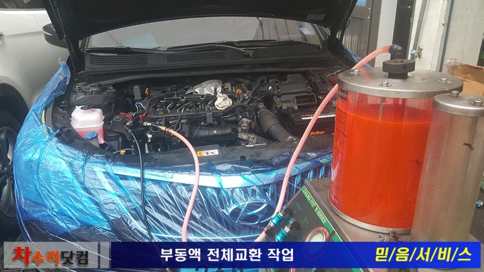 부동액이 녹색에서 핑크핑크로 바꼈기에