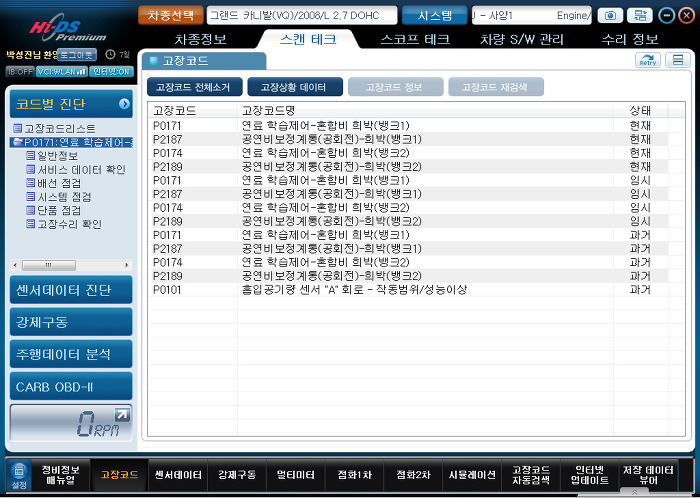 현재, 임시, 과거 고장코드가 13개나 ECU에서 체크를 하고 있는 상태 였습니다...