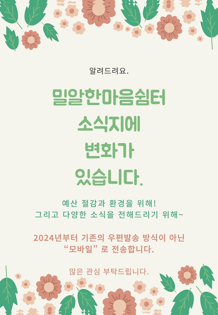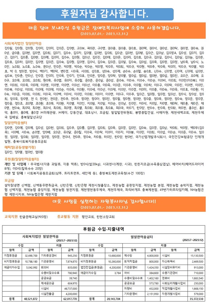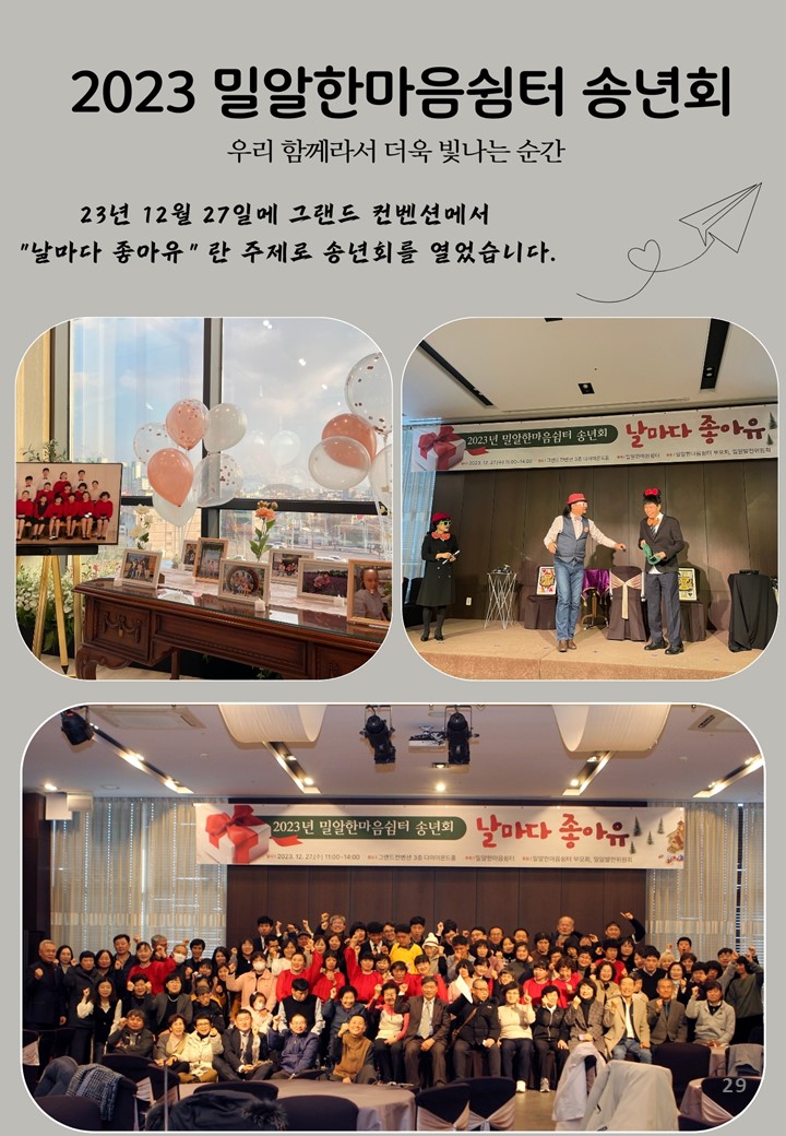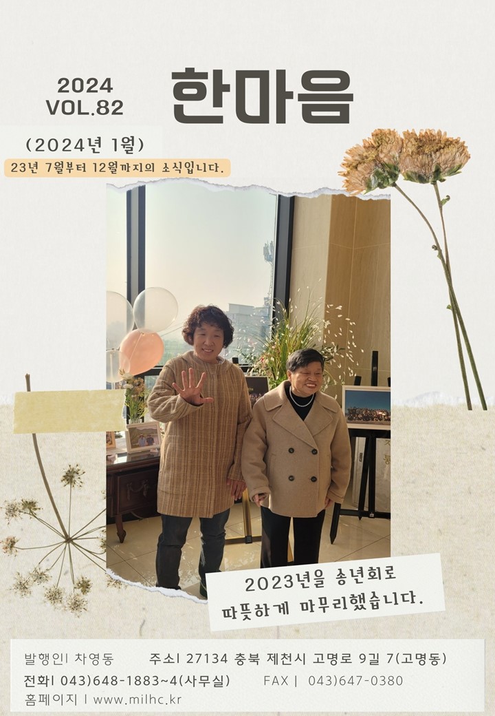 2024년 밀알한마음쉼터 첫번째 소식지를 전합니다_통권 제82호 작성자주야♣|작성시간24.01.25|조회수36 목록 댓글 1 글자크기 작게가 글자크기 크게가 다음검색 현재 게시글 추가 기능 열기 북마크 신고 센터로 신고 댓글 댓글 1 댓글쓰기 답글쓰기 댓글 리스트 작성자박여수^하나님의은혜믿음성령 | 작성시간 24.01.26 댓글 전체보기