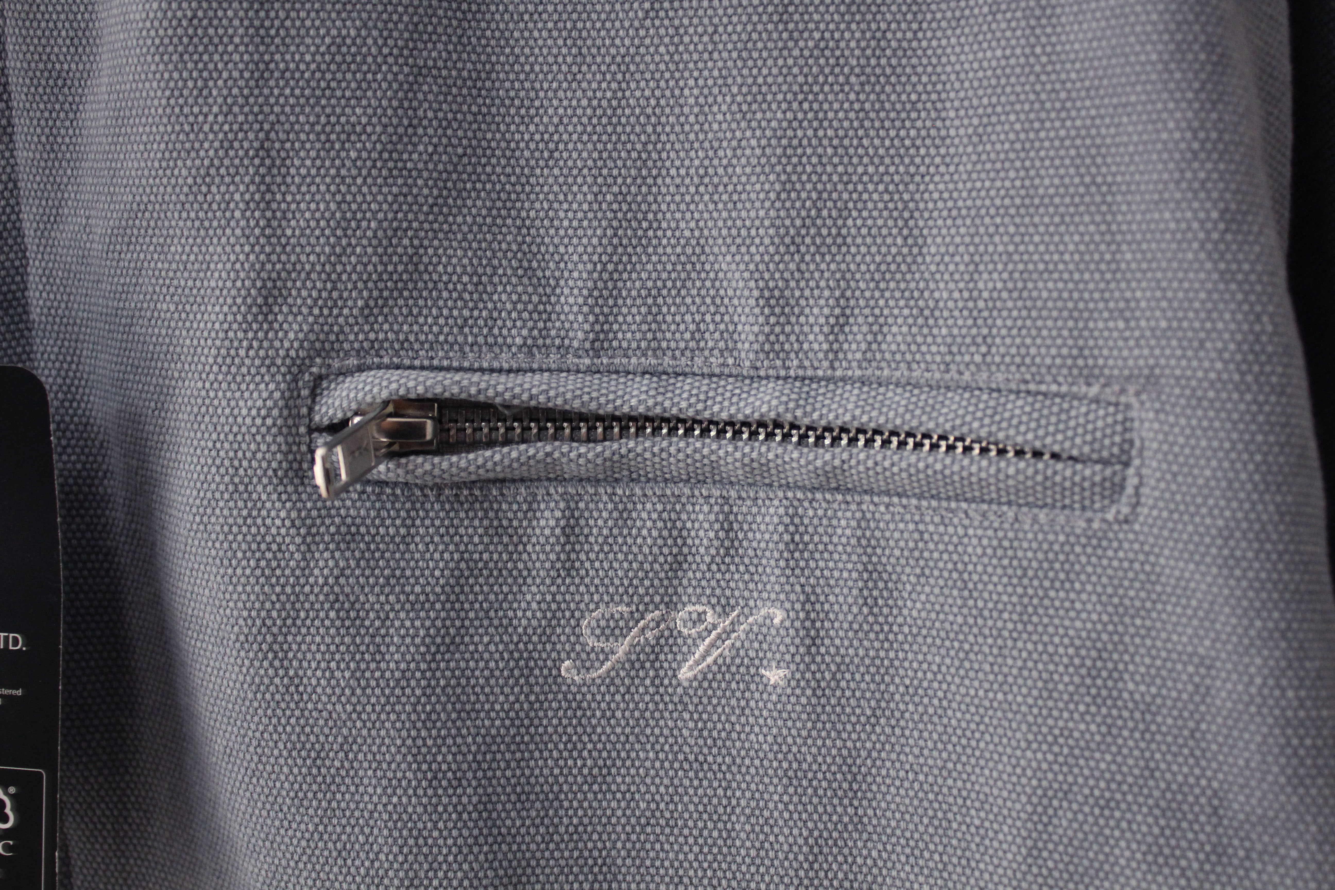 담백한 디자인이지만 소재, 자수 포인트, 사선의 포켓 등 지루하지 않은 디테일이 있어 예쁘네요