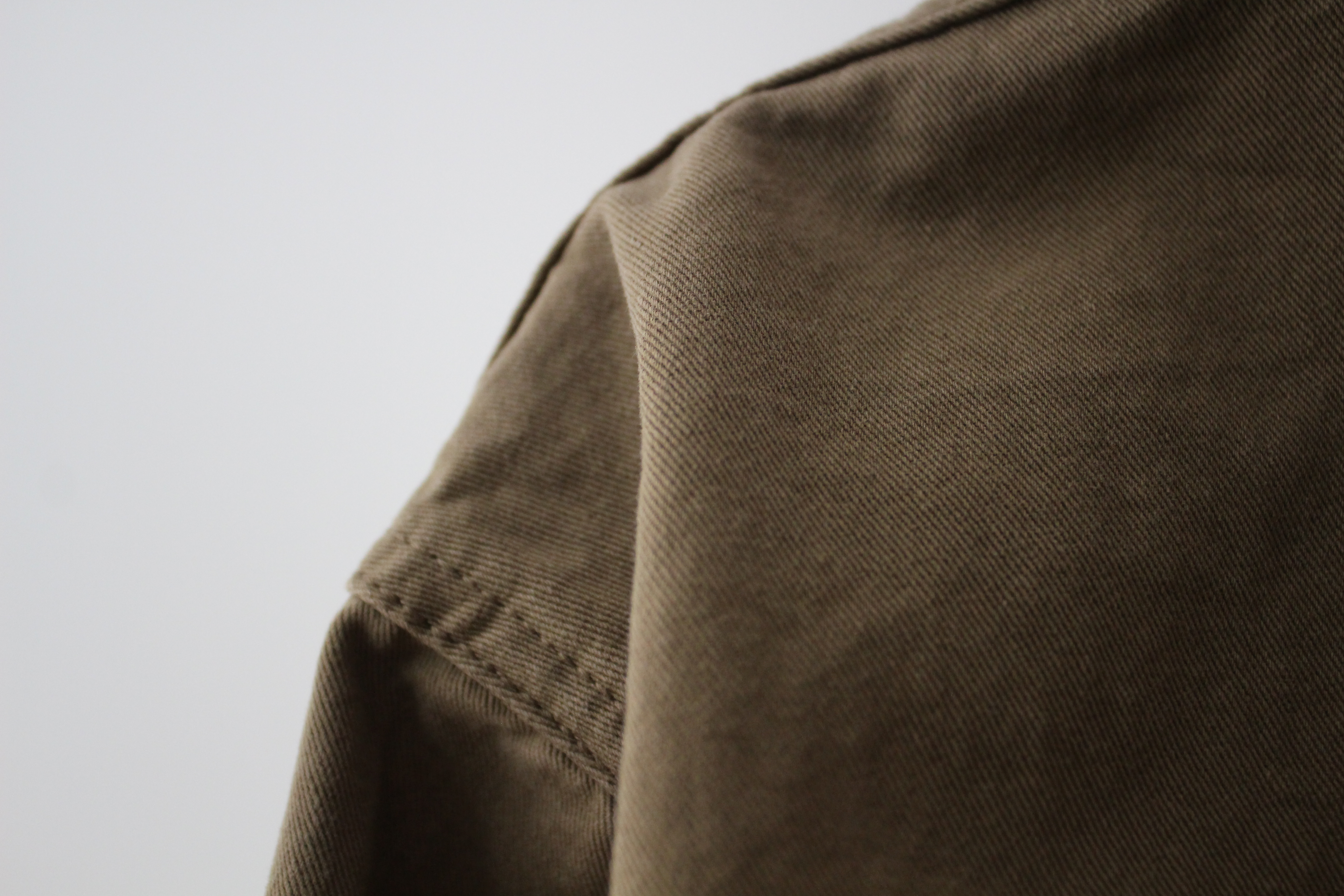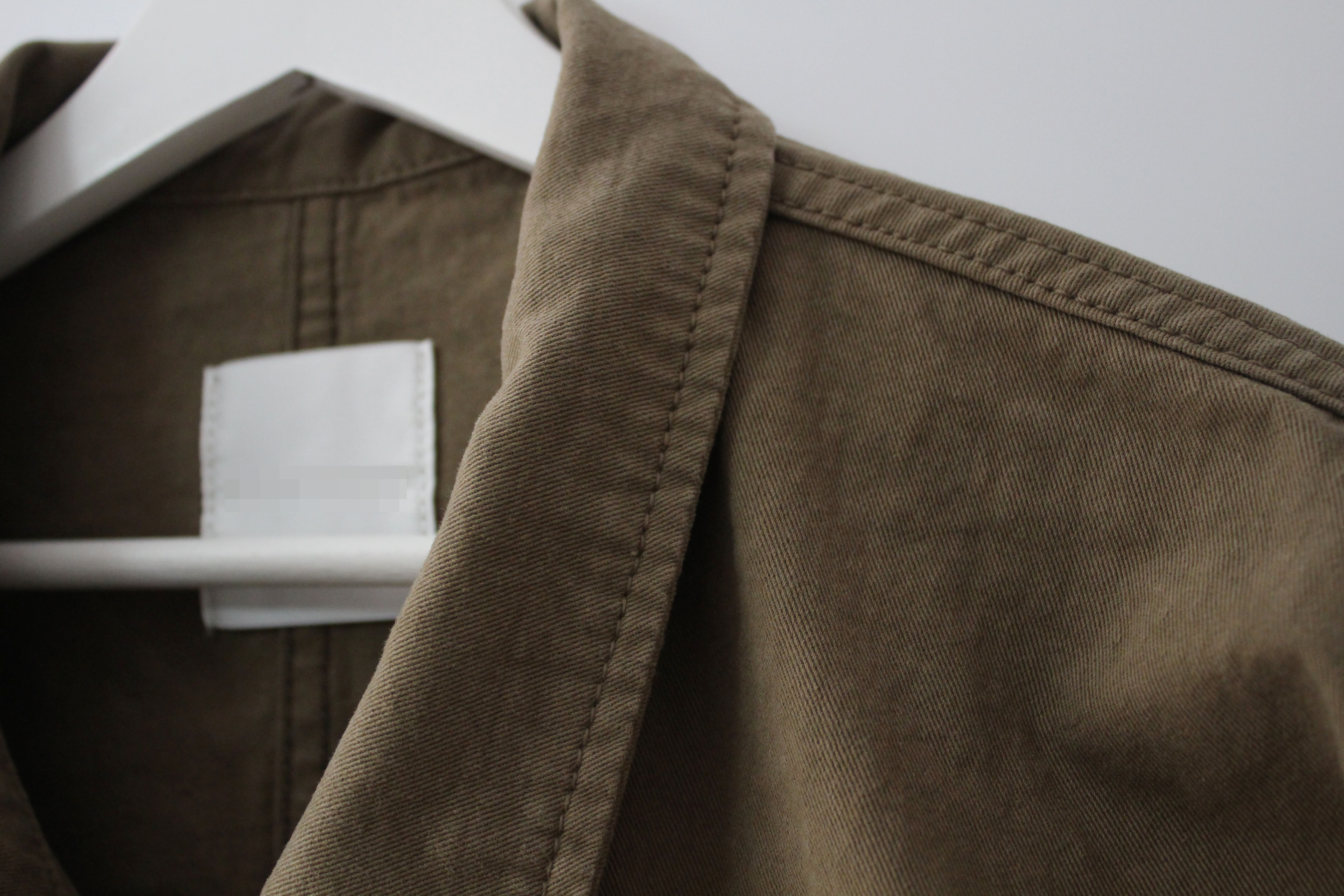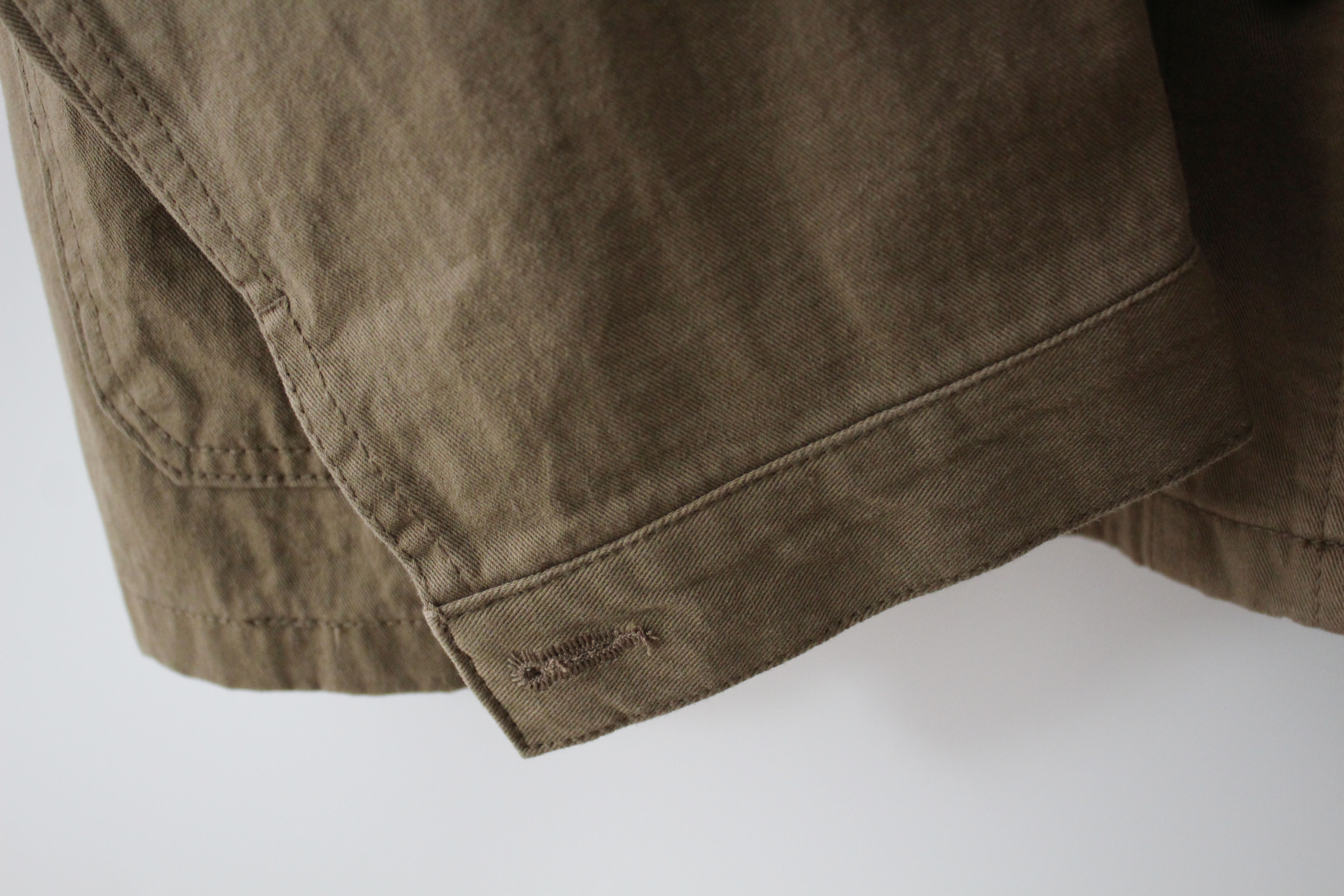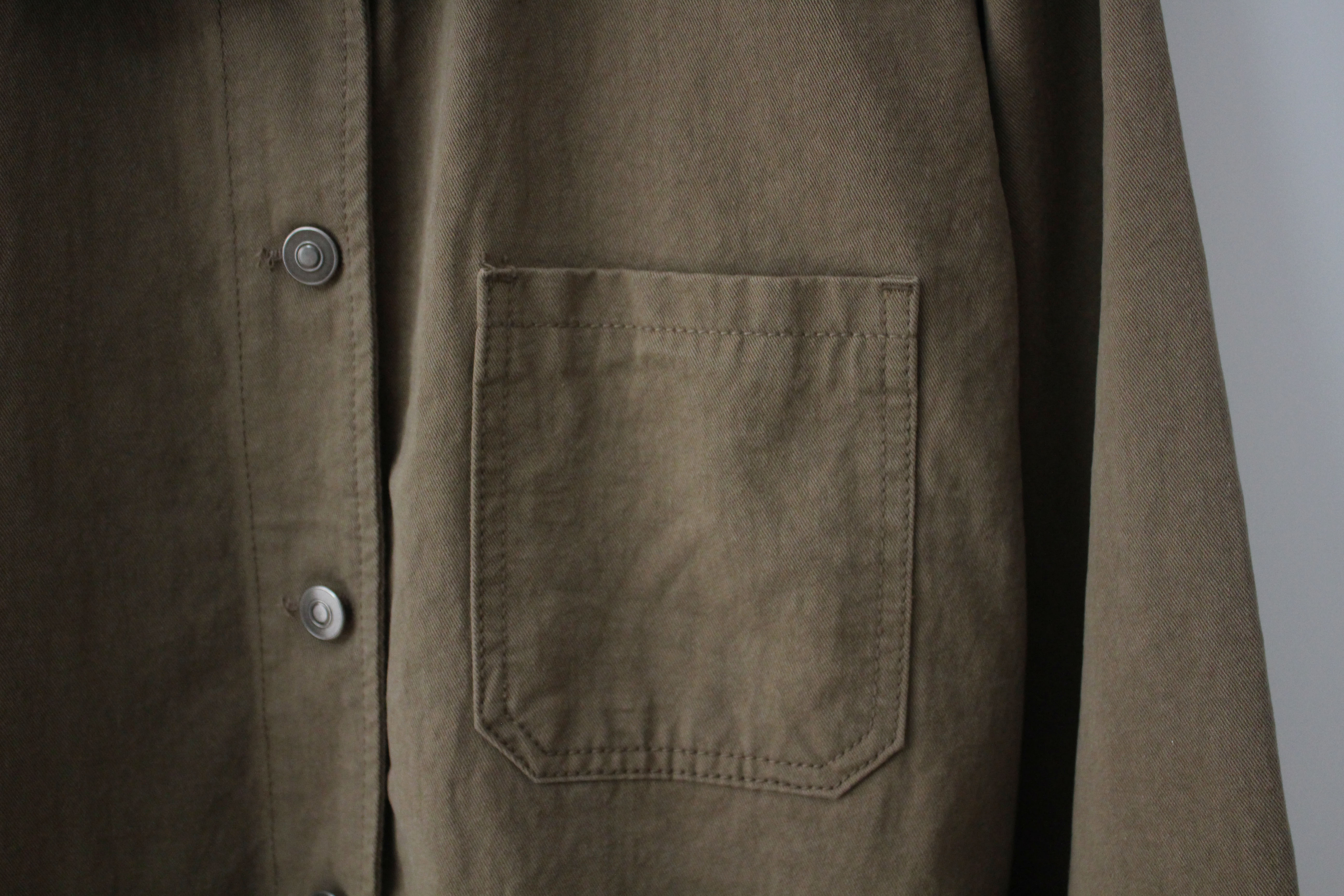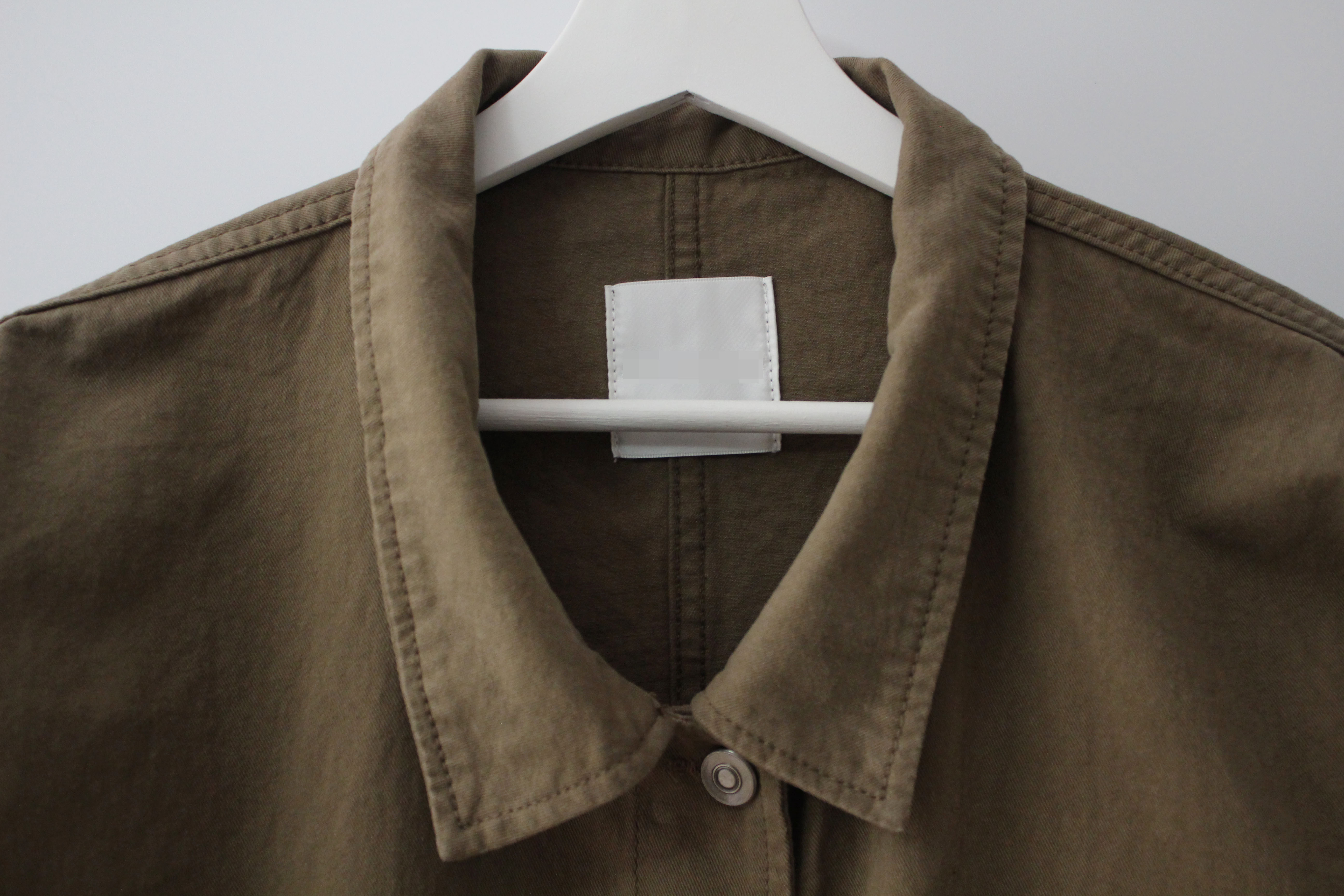 단추가 중간에서 조금 옆쪽에서 채워집니다 그래서 윗면의 카라가 조금 더 넓게 보이는데
