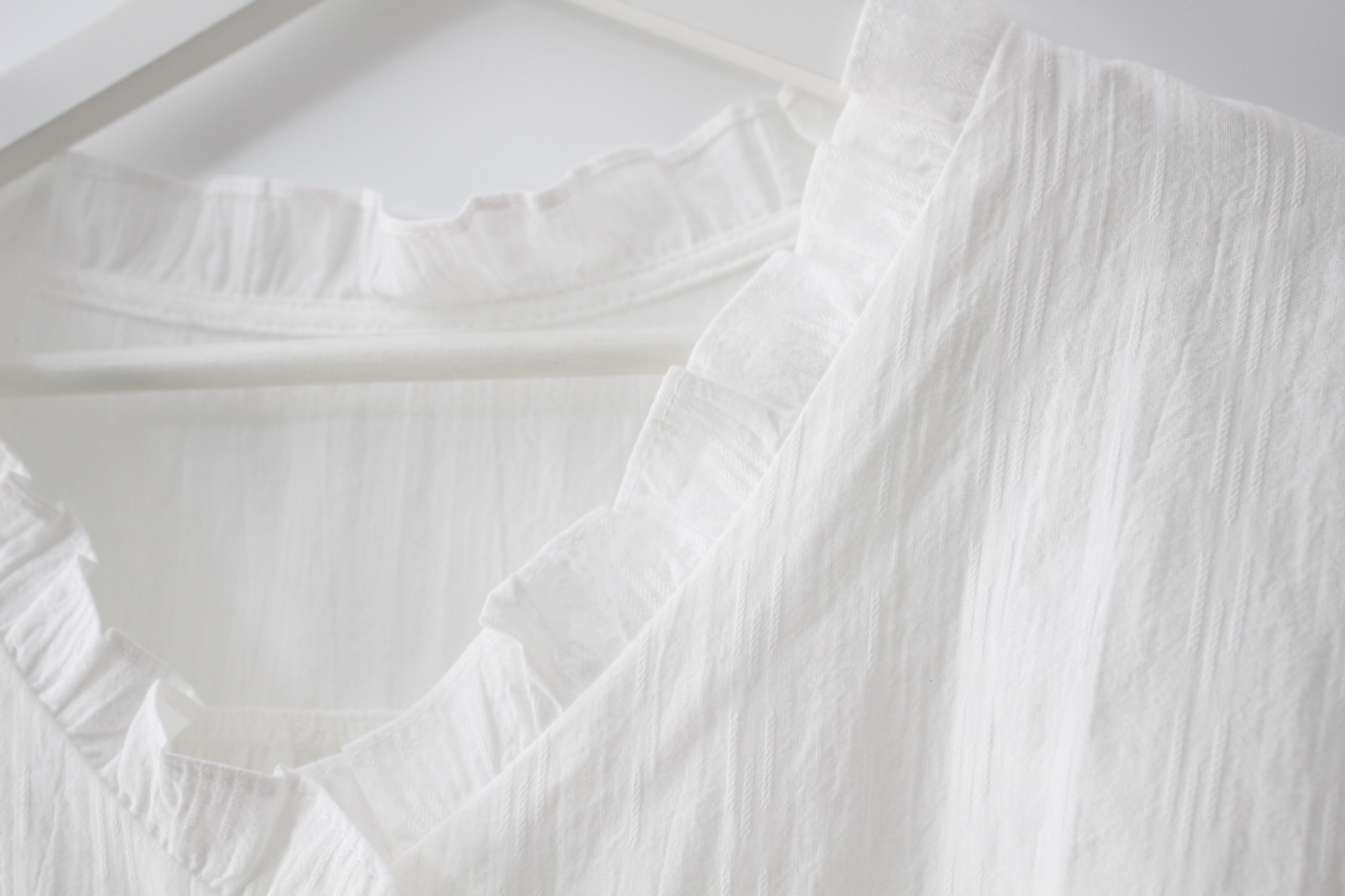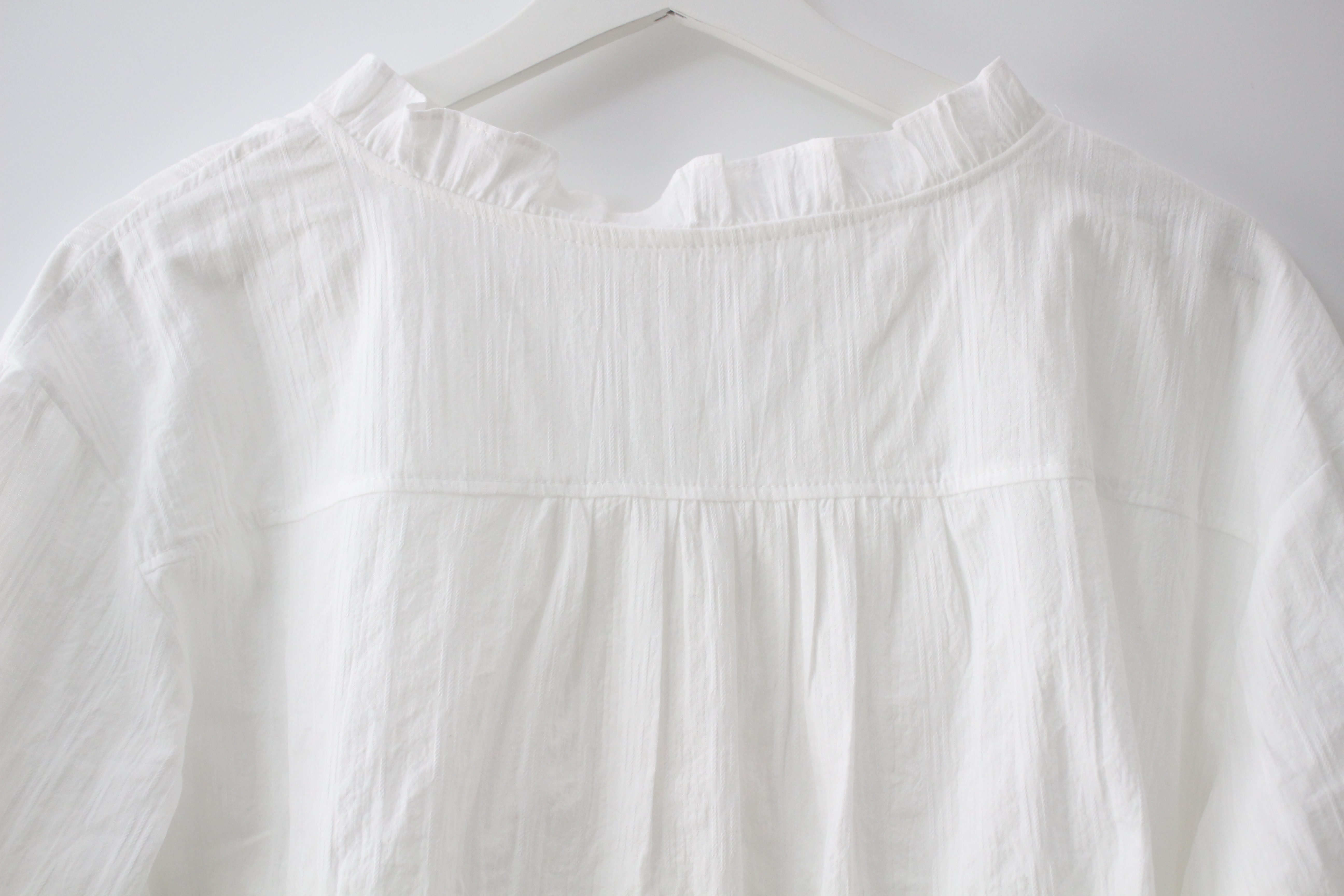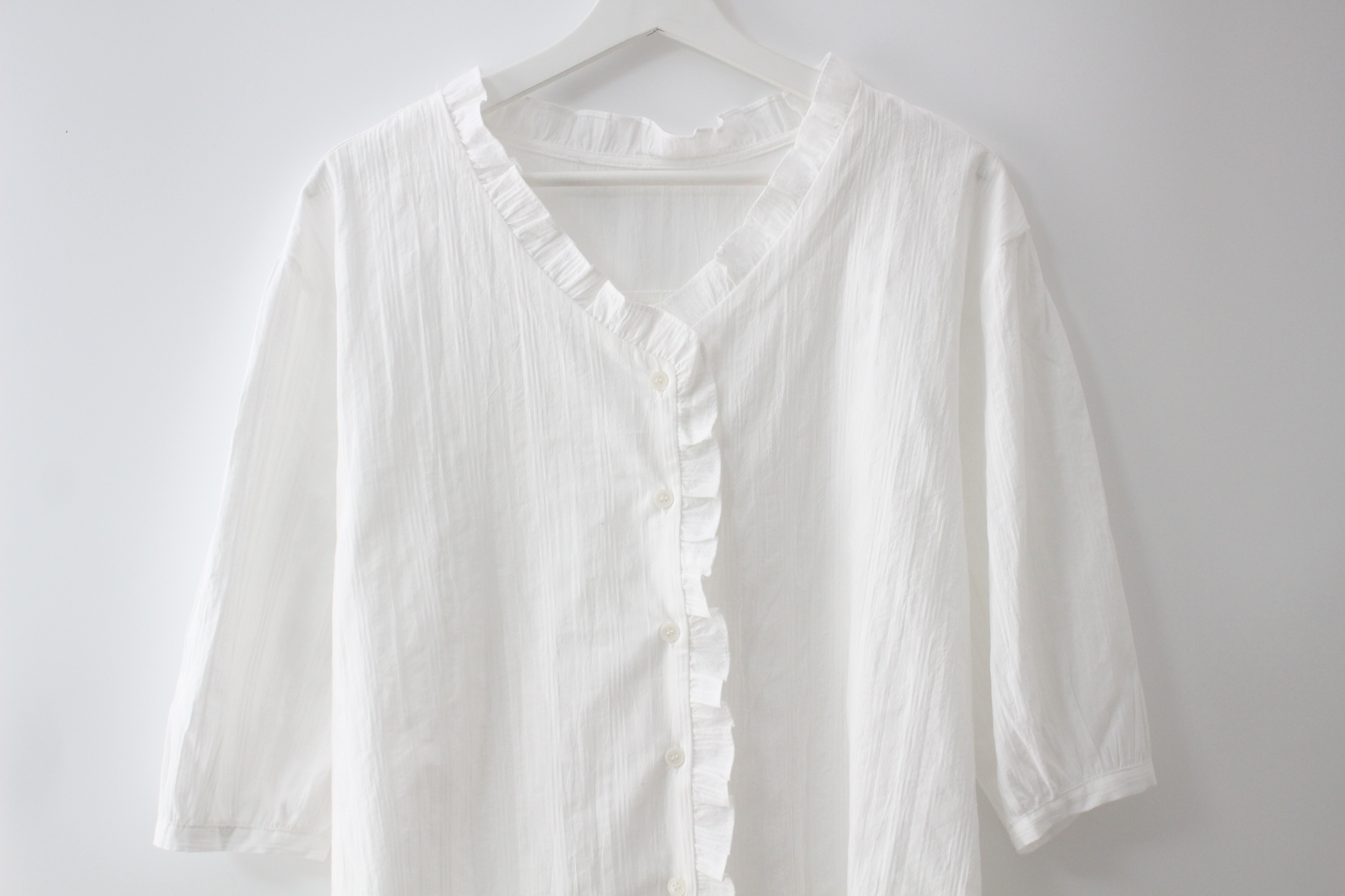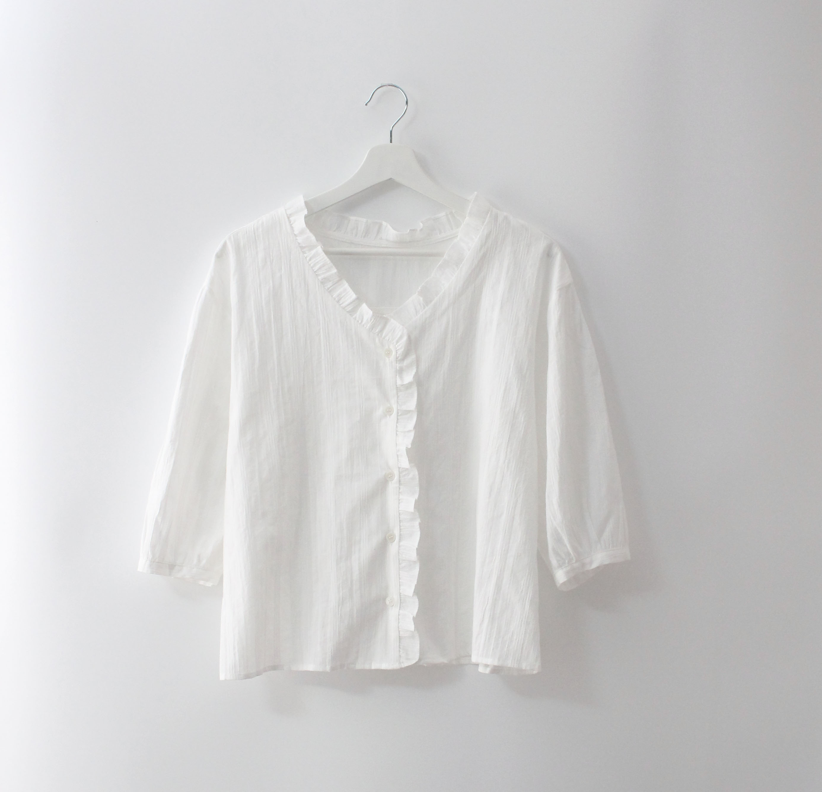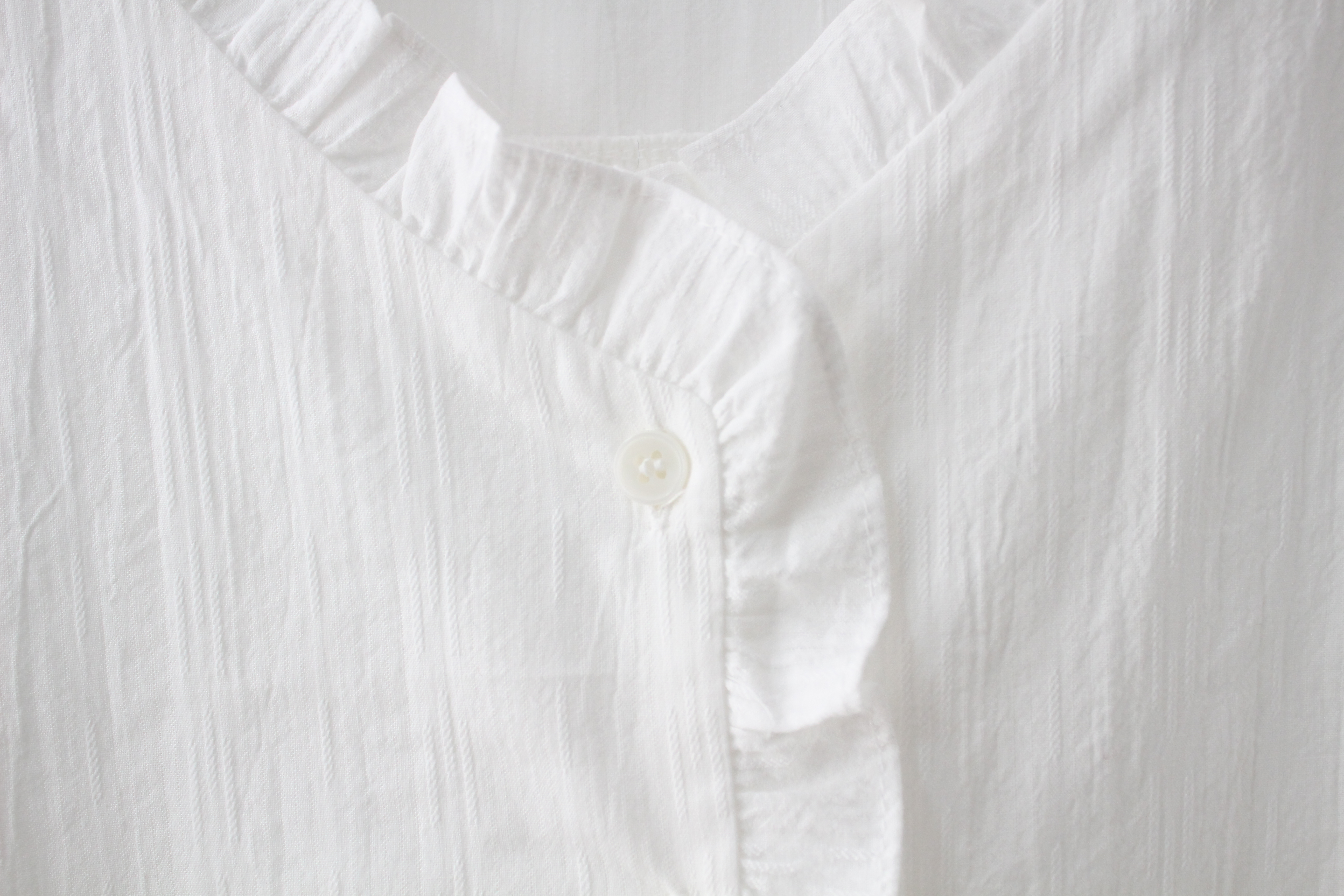 넥라인과 단추따라 내려오는 프릴이 포인트에요