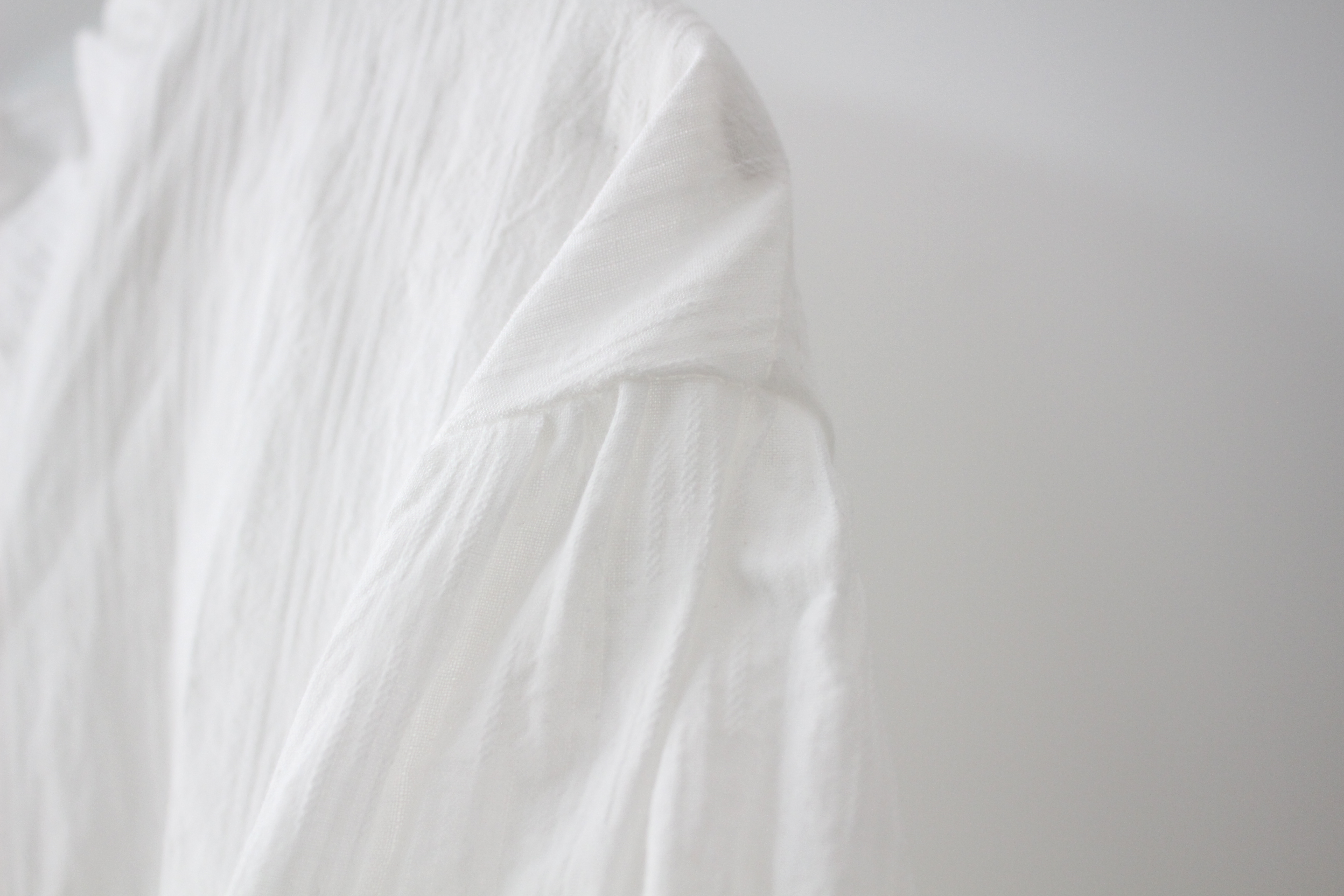 6-7부로 내려오는 소매와 프릴 디테일이 잘 어울려요