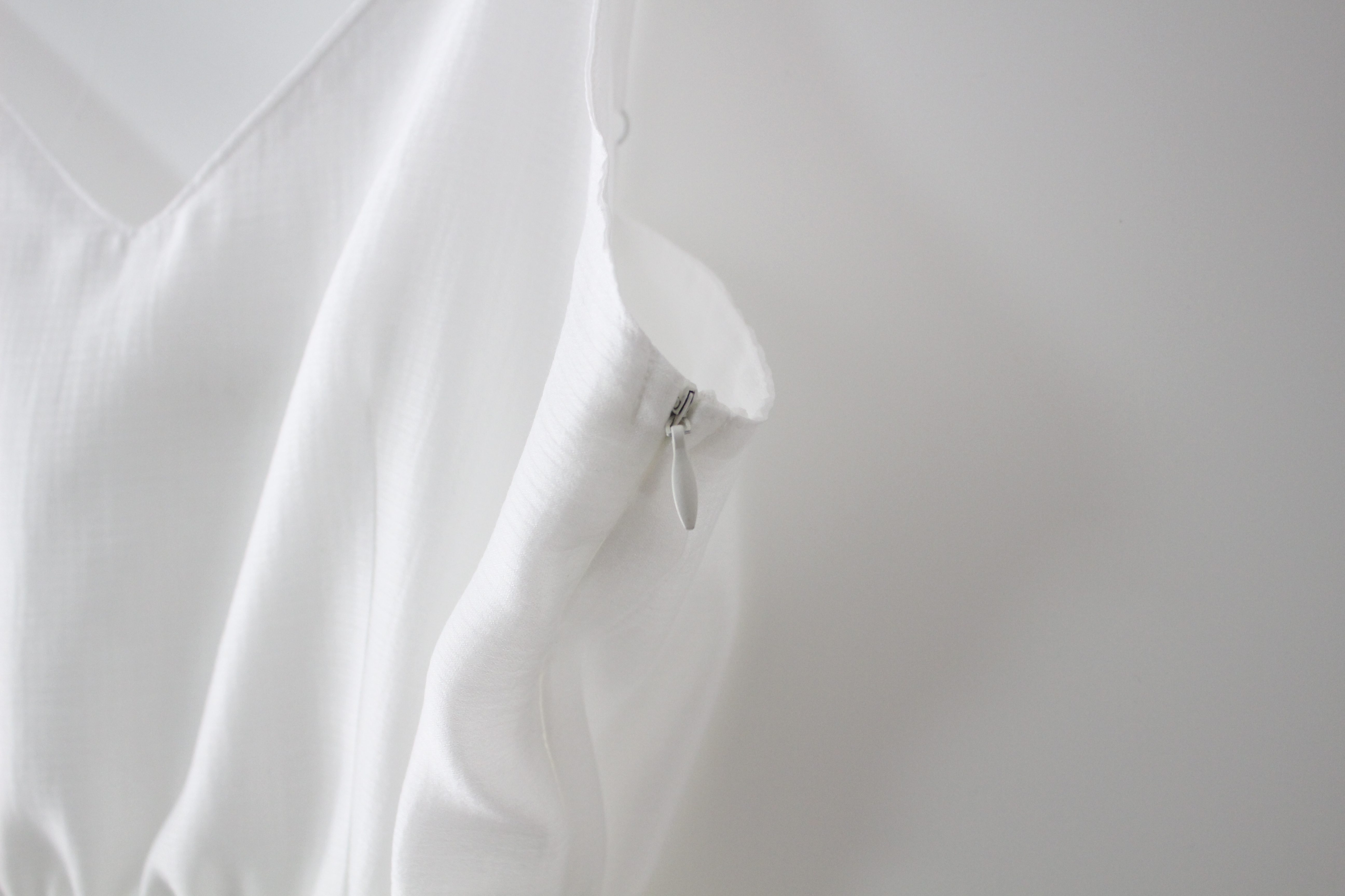 가슴선의 파임, 몸통 사이즈, 밑단의 프릴 기장이 적당해서