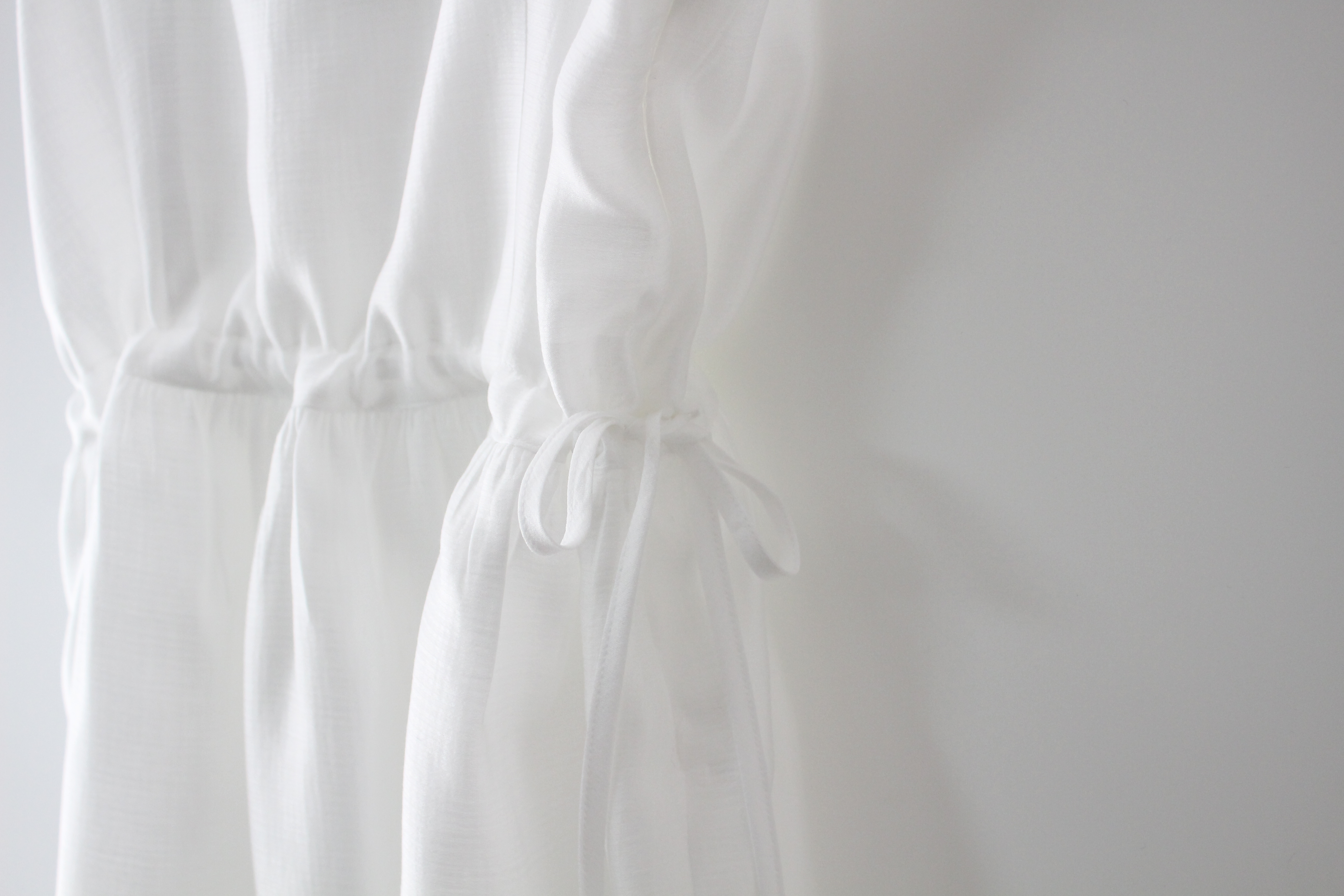 허리선은 따로 밴딩은 아니고 옆쪽의 끈으로 주름을 살짝 잡아주는 용도로만 쓰입니다