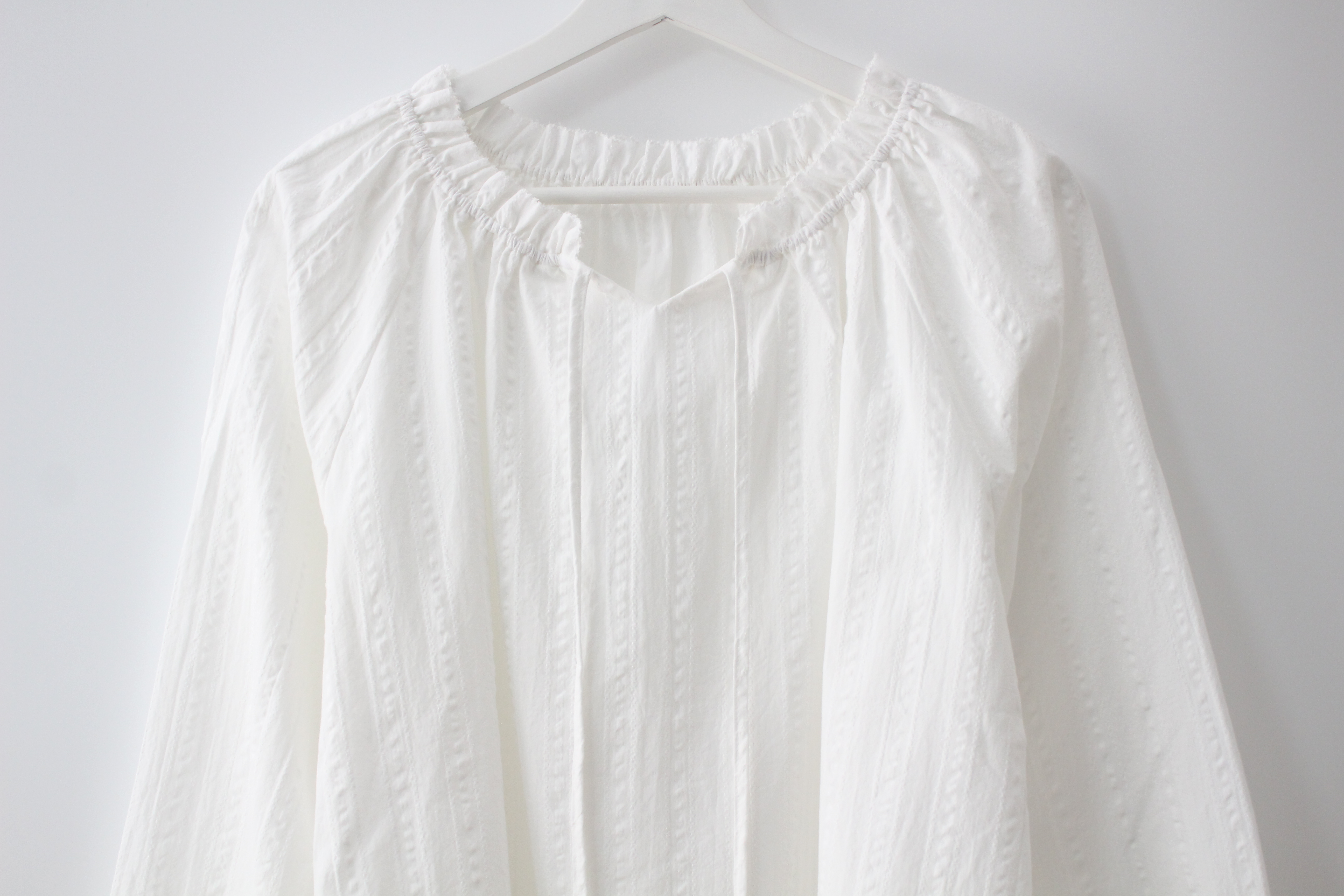 넥라인에서 내려오는 주름이 많지 않아서 가슴 부분 부해보이는것도 덜 하네요