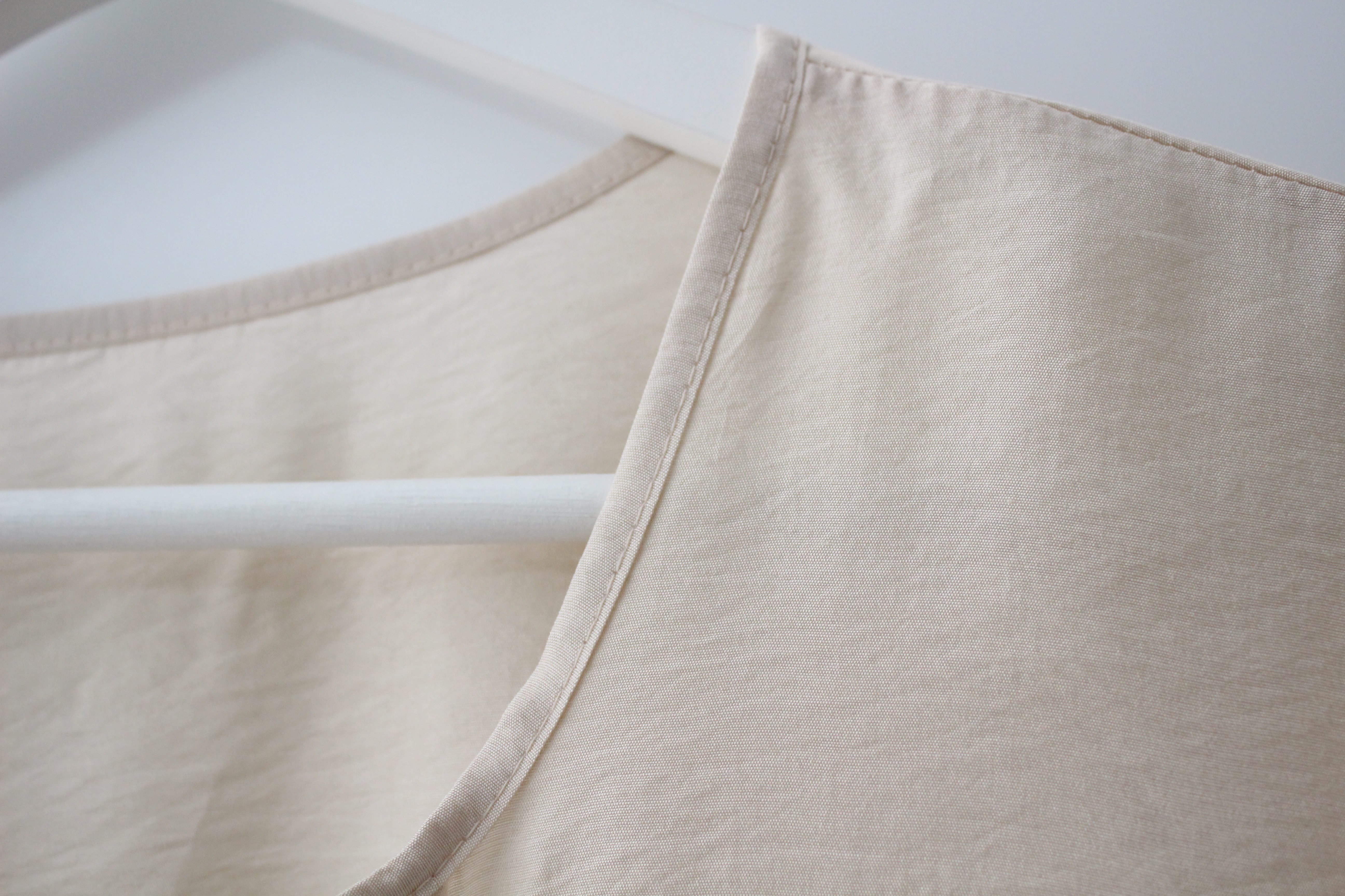 브이넥은 생각보다 넓지도, 깊지도 않아 끈은 묶지 않아도 될거같아요