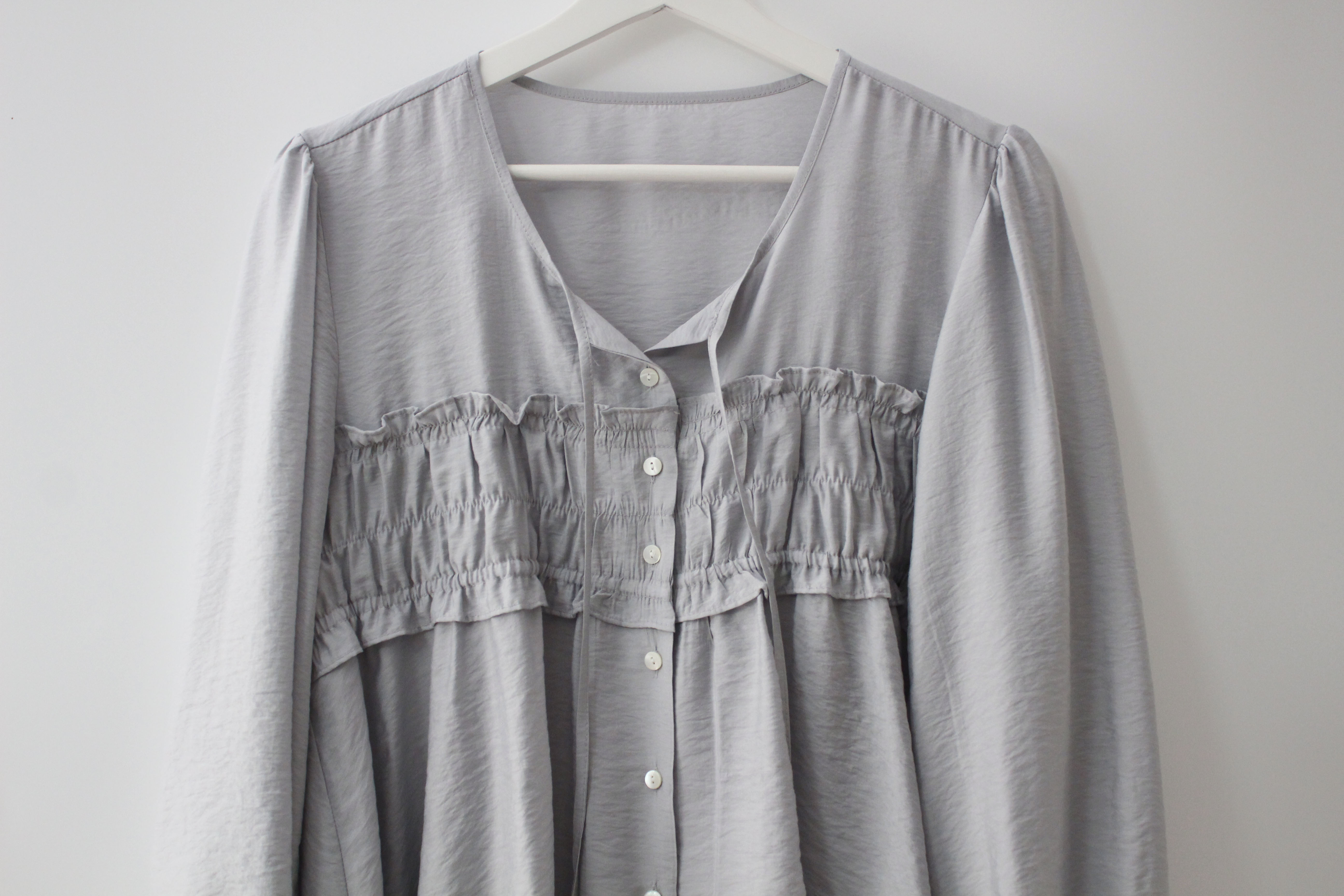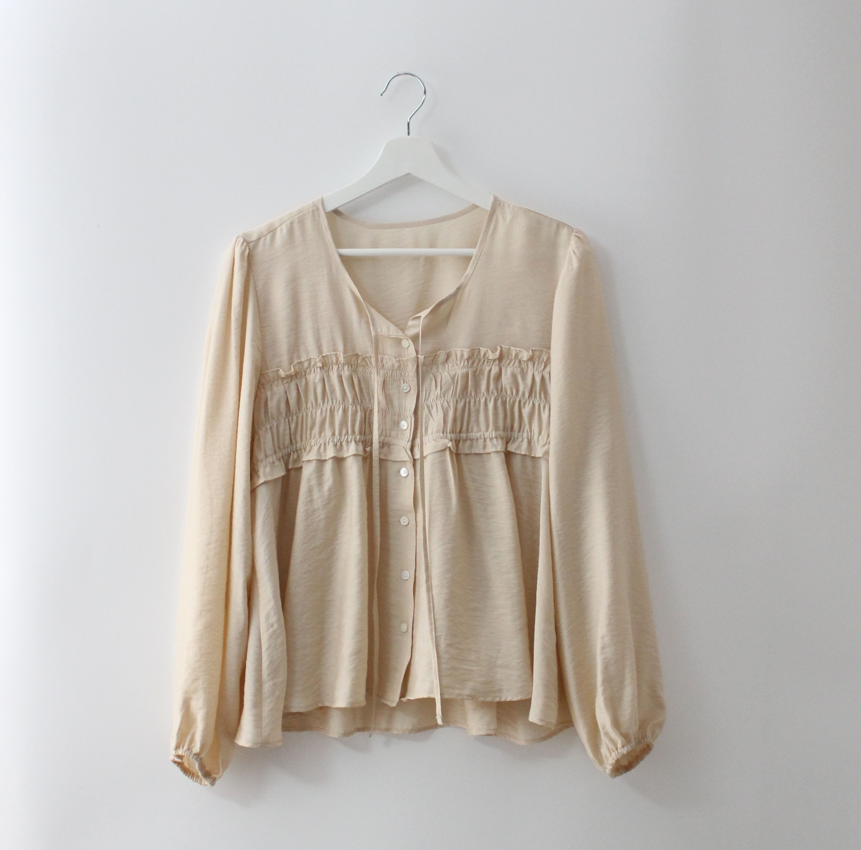 주름,핀턱이 여기저기 많이 잡혀 있는 디자인이라 구김이 더 생겨도 지저분해보이지 않더라구요
