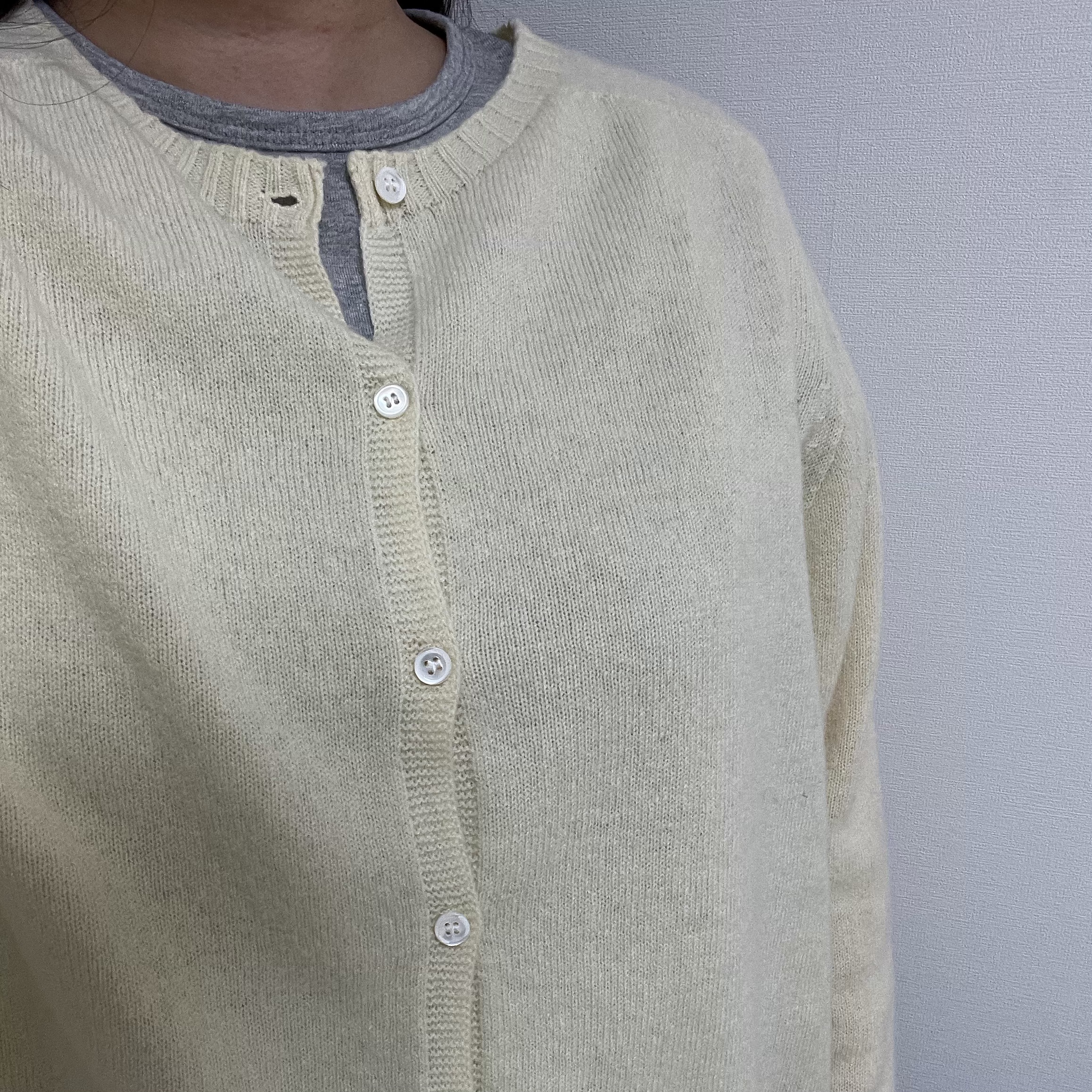 딱 원하던 색상이예요 너무 예쁩니당. 다만 총장이 약간 길어서 뭔가 애매..시보리가 좁은 것도 아니어서 허리에 걸쳐지지도 않고🤔 넥라인도 좀 높아서 레이어드해서 입으려면 단추를 풀고 만져줘야됩니다. 단독으로 입어도 될 만큼 부드럽고 예뻐요!