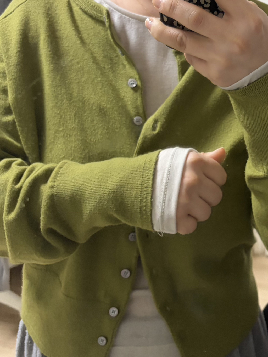 상비인데 레이어드로 입고 화이트팬츠나 스커트, 슬랙스 청바지 어디에도 다 잘 어울릴것 같아요!!