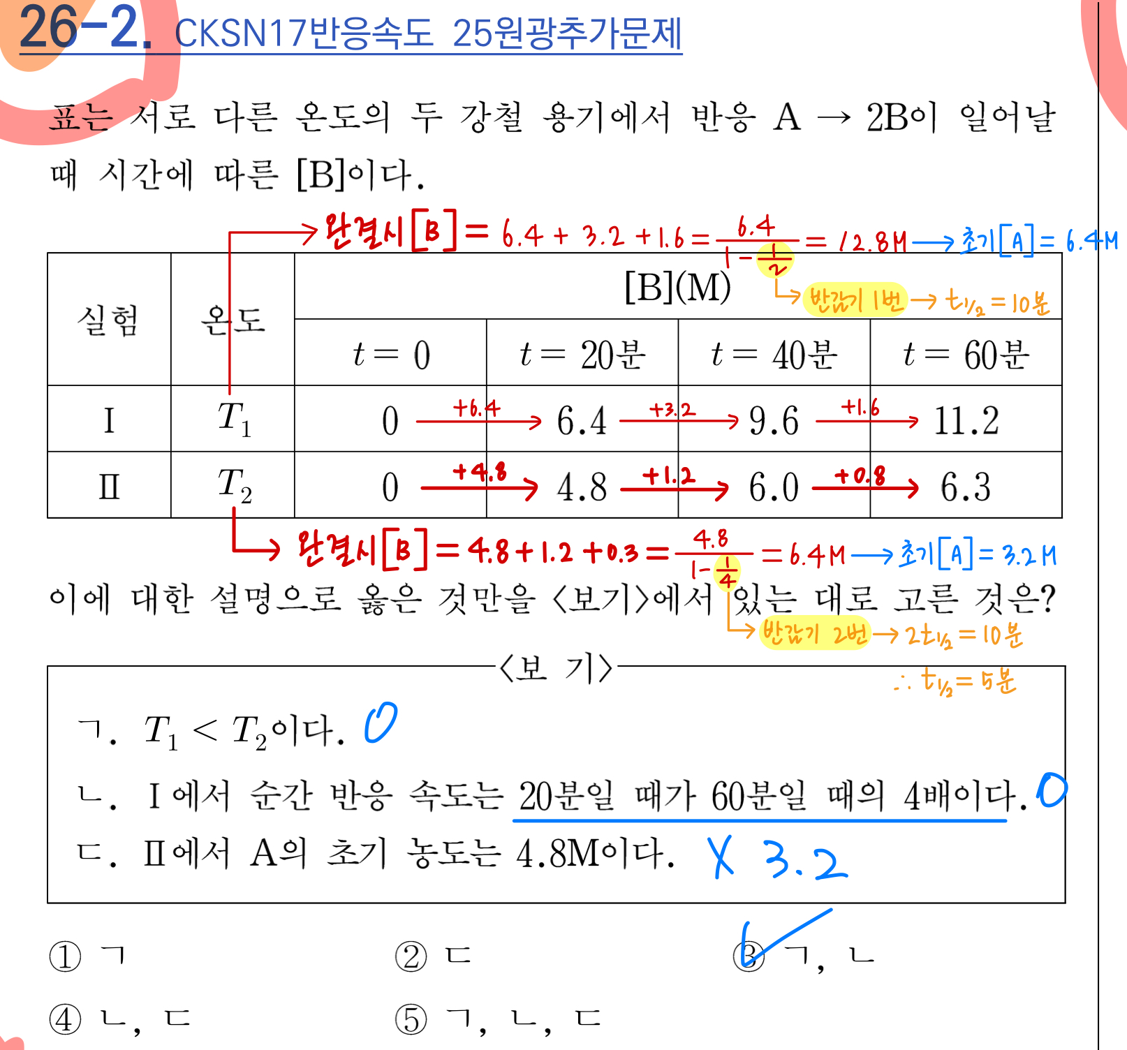 3) 등비급수의 합공식을 이용한 완결시[B] 바로 구하고 -> 초기 [A]도 바로 구하기.(이 경우, 반감기도 바로 구할 수 있다)