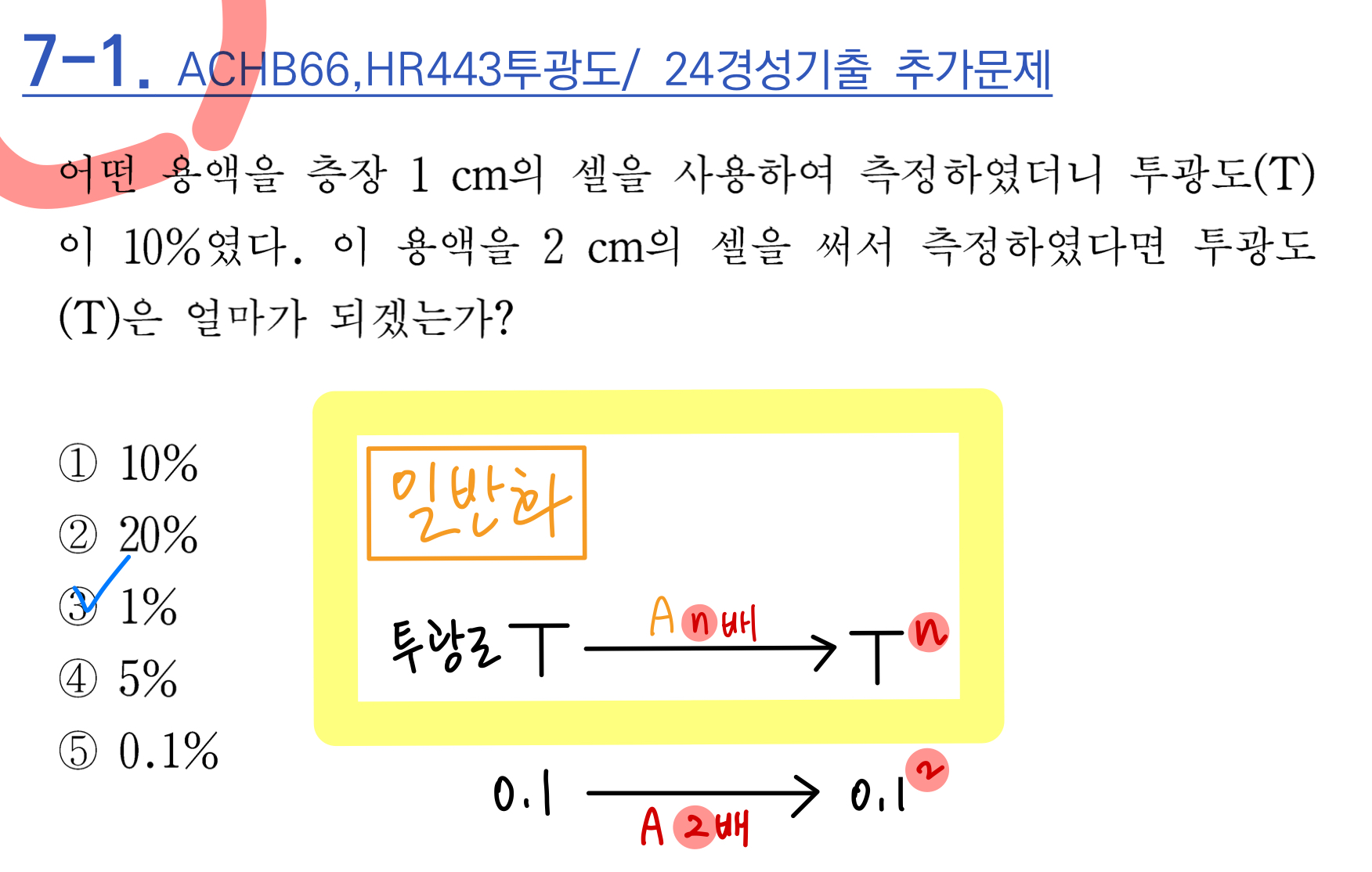 2) 흡광도와 투광도의 관계 일반화