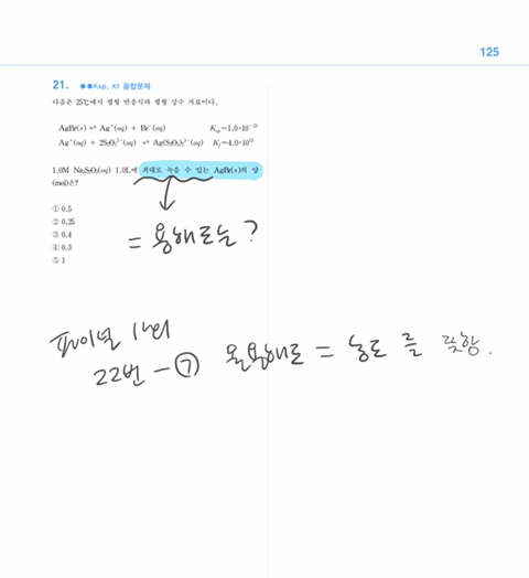 2. 22번 파이널 문제에서 X 나 A랑 반응하는 다른 물질이 아닌 물을 첨가했기때문에 용해도가 유지된다는 것이죠?