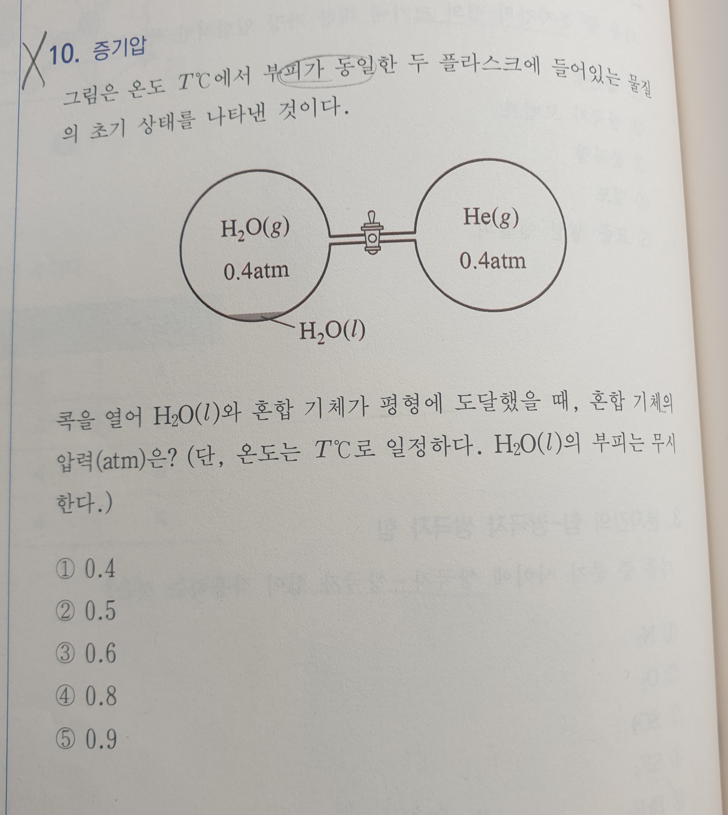 답댓글 작성자sssssss 작성자 본인 여부 작성자 작성시간 22.10.17 '기체 혼합물에서 전체 압력은 각 기체의 부분압의 합과 같다' 는 것만 생각하고 전체 압력을 0.8atm 이라 풀었는데, 제가 어떤걸 놓치고 있을까요?