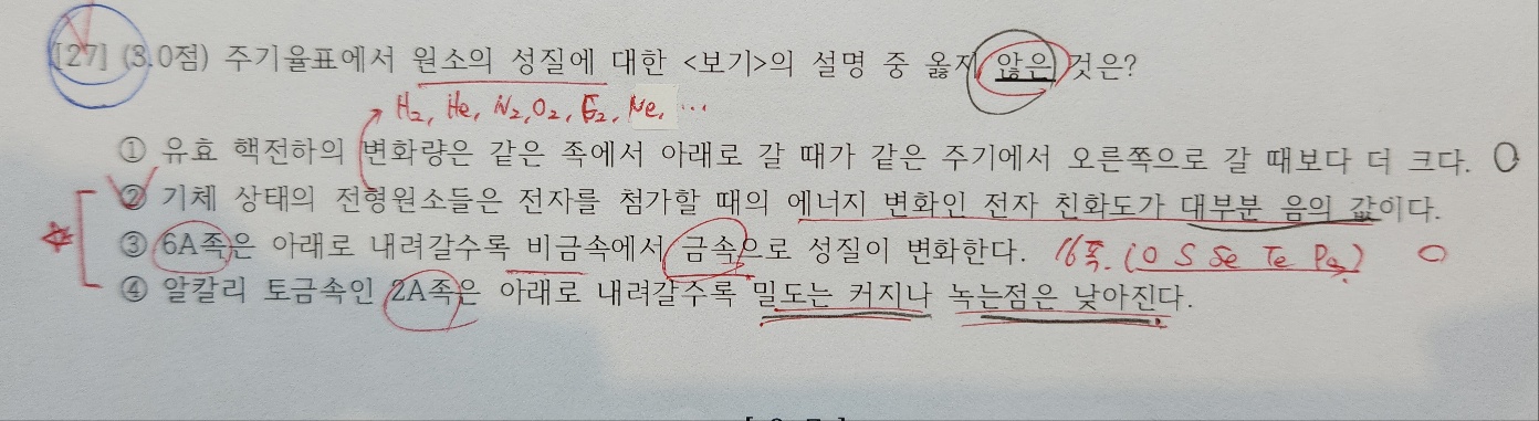27번 문제의 1번 보기는 매우 상식적으로 틀렸다는 것을 알 수 있어야합니다.