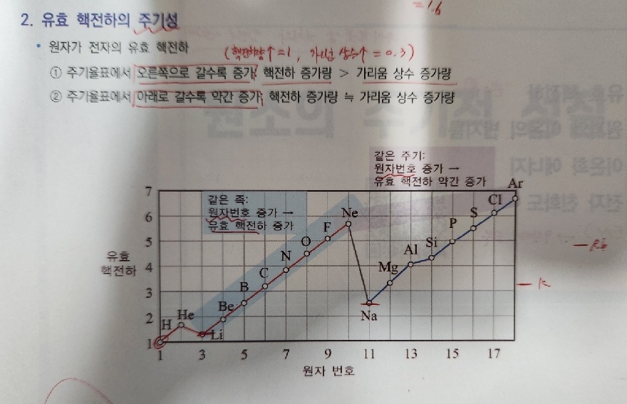 교수님께서 설명해주신 내용을 염두에 두고 핵심이론 7장 유효핵전하 관련 그래프를 찾아보았습니다.